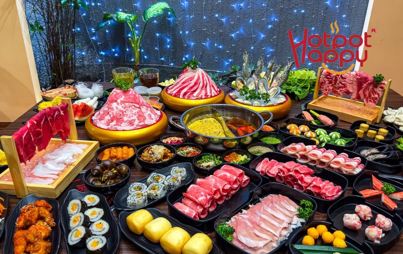 Điều làm nên sự khác biệt của Buffet Lẩu Happy chính là thực đơn vô cùng phong phú và chất lượng vượt trội. Bạn sẽ được chiêu đãi với những món hải sản cao cấp như tôm Alaska, cua hoàng đế, cùng nhiều loại hải sản tươi sống tùy chọn khác. Không chỉ dừng lại ở hải sản, quán còn phục vụ các loại thịt nhập khẩu từ Mỹ và Úc, mang đến sự đa dạng cho bữa tiệc buffet của bạn, đáp ứng mọi khẩu vị.