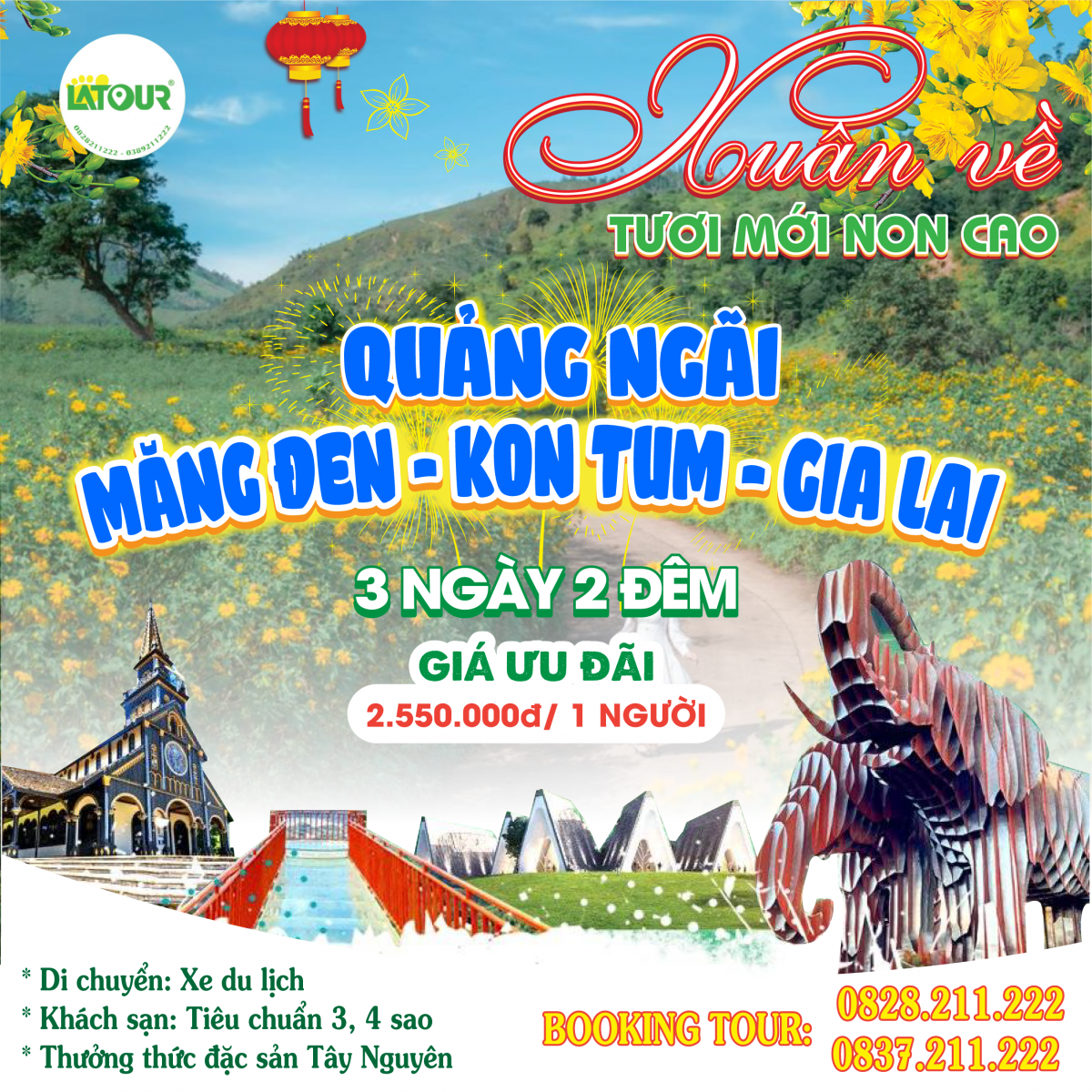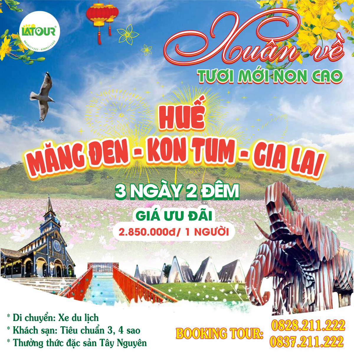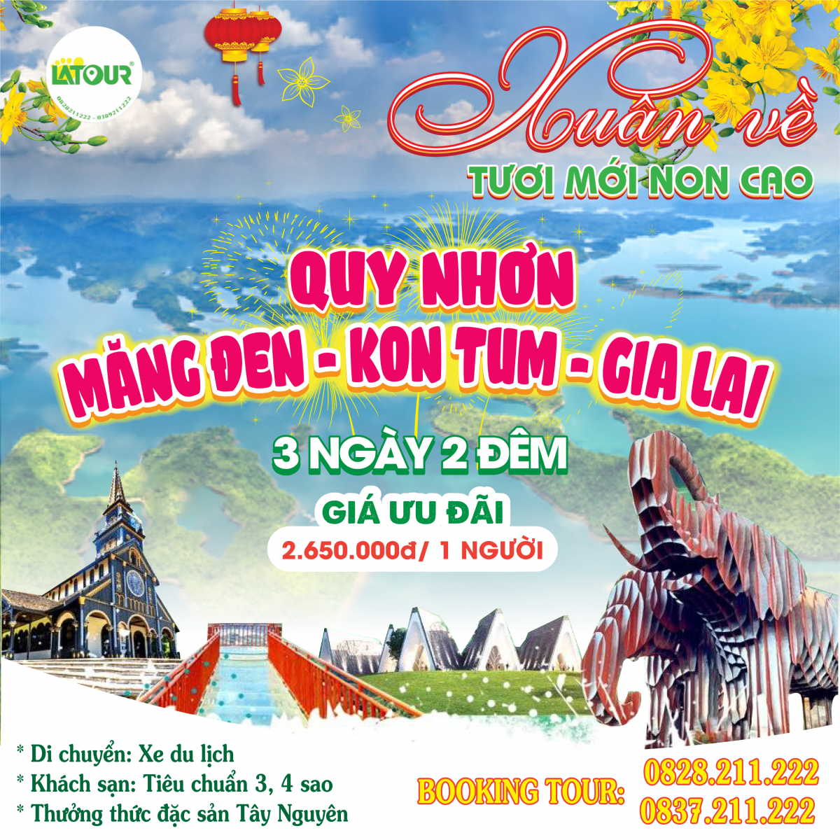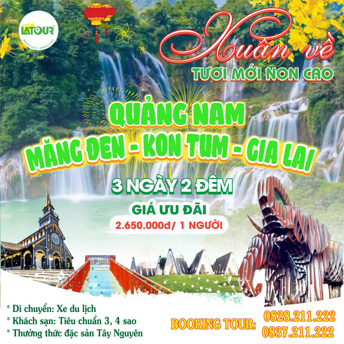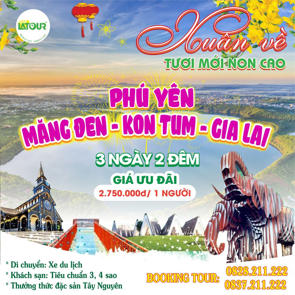 Những ngày đầu Xuân, ở vùng Tây Nguyên như được tô điểm bởi muôn vàn sắc màu của thiên nhiên hòa với tiết trời mát mẻ, dễ chịu. Thời điểm này cũng là lúc các thành viên trong gia đình dành thời gian bên nhau sau một năm bộn bề cùng công việc. Không ít gia đình tận hưởng kì nghỉ lễ cùng nhau bằng cách đi du lịch, đặc biệt là những kế hoạch du lịch Tây Nguyên. Nắm bắt được tình hình đó, công ty Latour đã rất kỹ càng trong việc xây dựng các chương trình tour du lịch có nhiều đổi mới và phù hợp với đa dạng nhu cầu khách hàng vào dịp Tết.