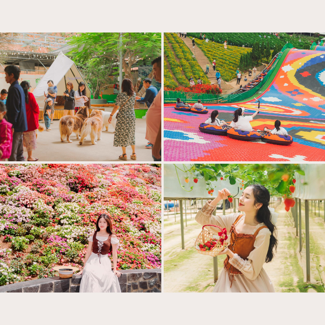 Puppy Farm - điểm tham quan ‘hot’ nhất hiện nay ( hơn 36 loài chó quý hiếm, hơn 100 cá thể chó, ngựa lùn, lạc đà Alpaca,...). Tại đây bạn có thể mua loại nông sản sạch được trồng tại trang trại. Ngoài ra, Quý khách sẽ tham quan vườn bí ngô + dâu tây công nghệ cao + dưa leo baby, dưa pepino + cà chua cherry, các vườn hoa ( theo mùa). Hiện nay, Puppy Farm vừa cho ra mắt đường trượt phao khô với thiết kế uốn lượn, có độ dốc vừa phải mang cảm giác mạnh nhưng luôn đảm bảo an toàn cho quý khách