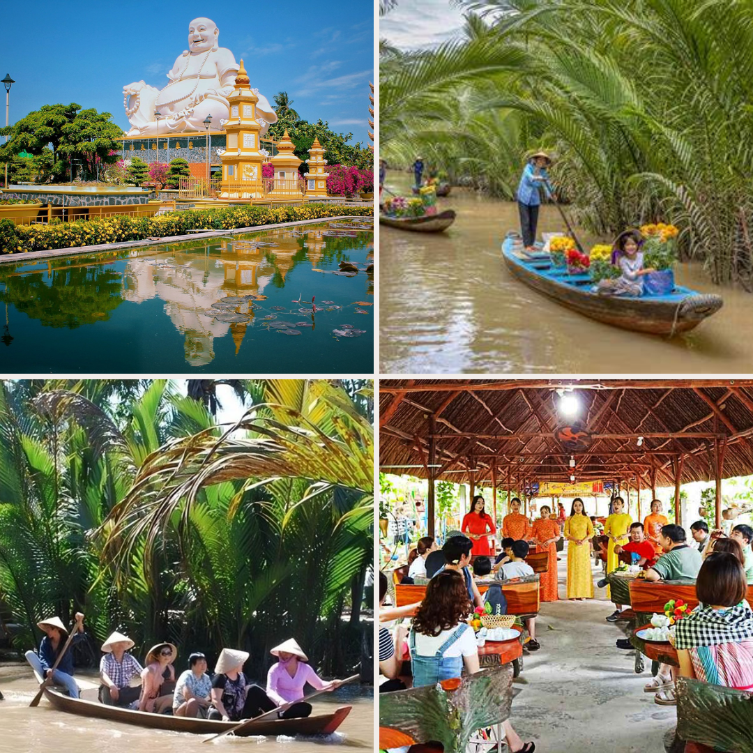 Những trải nghiệm mới lạ: ngồi trên một chiếc thuyền nhỏ trên chợ nổi hay ngồi xuồng ba lá len lỏi qua những hàng dừa nước xanh mướt, và lắng nghe đờn ca tài tử giữa khung cảnh miệt vườn an yên... Tất cả đều có trong Tour Miền Tây 4 ngày 4 đêm khởi hành đi từ Đà Lạt mới nhất. Một hành trình Miền Tây không ồn ào náo nhiệt. Tour Đà Lạt - Miền Tây 4 ngày 4 đêm sẽ đưa quý khách đến vườn trái cây trĩu quả, thưởng thức những bữa cơm nhà đậm chất Nam Bộ, khám phá nền tôn giáo và văn hóa giao thoa trong không gian thiêng liêng và đầy màu sắc.