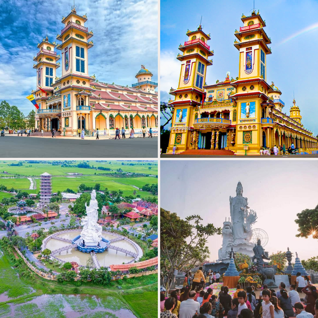 - Thánh thất Cao Đài: Đây là trung tâm tôn giáo của đạo Cao Đài – một tôn giáo nội sinh đặc trưng của Việt Nam. Thánh thất gây ấn tượng với kiến trúc độc đáo, phối hợp hài hòa giữa yếu tố phương Đông và phương Tây, là điểm đến không thể bỏ qua đối với du khách yêu thích văn hóa và kiến trúc tâm linh.