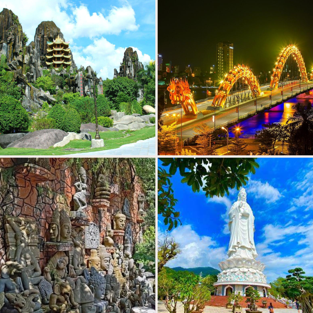 Ngũ Hành Sơn: Là một danh thắng nổi tiếng của Đà Nẵng, gồm năm ngọn núi đá vôi kỳ vĩ mang tên Kim, Mộc, Thủy, Hỏa, Thổ, tượng trưng cho ngũ hành trong vũ trụ. Nơi đây không chỉ nổi bật với vẻ đẹp tự nhiên hùng tráng mà còn là không gian linh thiêng với các ngôi chùa cổ, động đá và hang sâu huyền bí. Khi đến Ngũ Hành Sơn, du khách sẽ có dịp tham quan những ngôi chùa linh thiêng như chùa Tam Thai, chùa Linh Ứng, khám phá các động như động Huyền Không, động Âm Phủ, và thưởng thức cảnh đẹp ngoạn mục của thành phố Đà Nẵng từ trên cao.