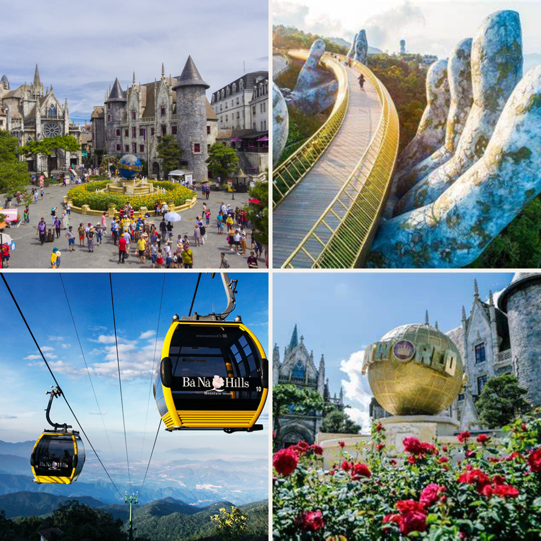- Cầu Vàng: Biểu tượng nổi tiếng toàn cầu, với thiết kế độc đáo gồm hai bàn tay khổng lồ bằng đá nâng đỡ cây cầu vàng óng, tạo cảm giác như đang lạc vào chốn thần tiên. Đây cũng là điểm check-in không thể bỏ lỡ khi đi tour Đà Nẵng.