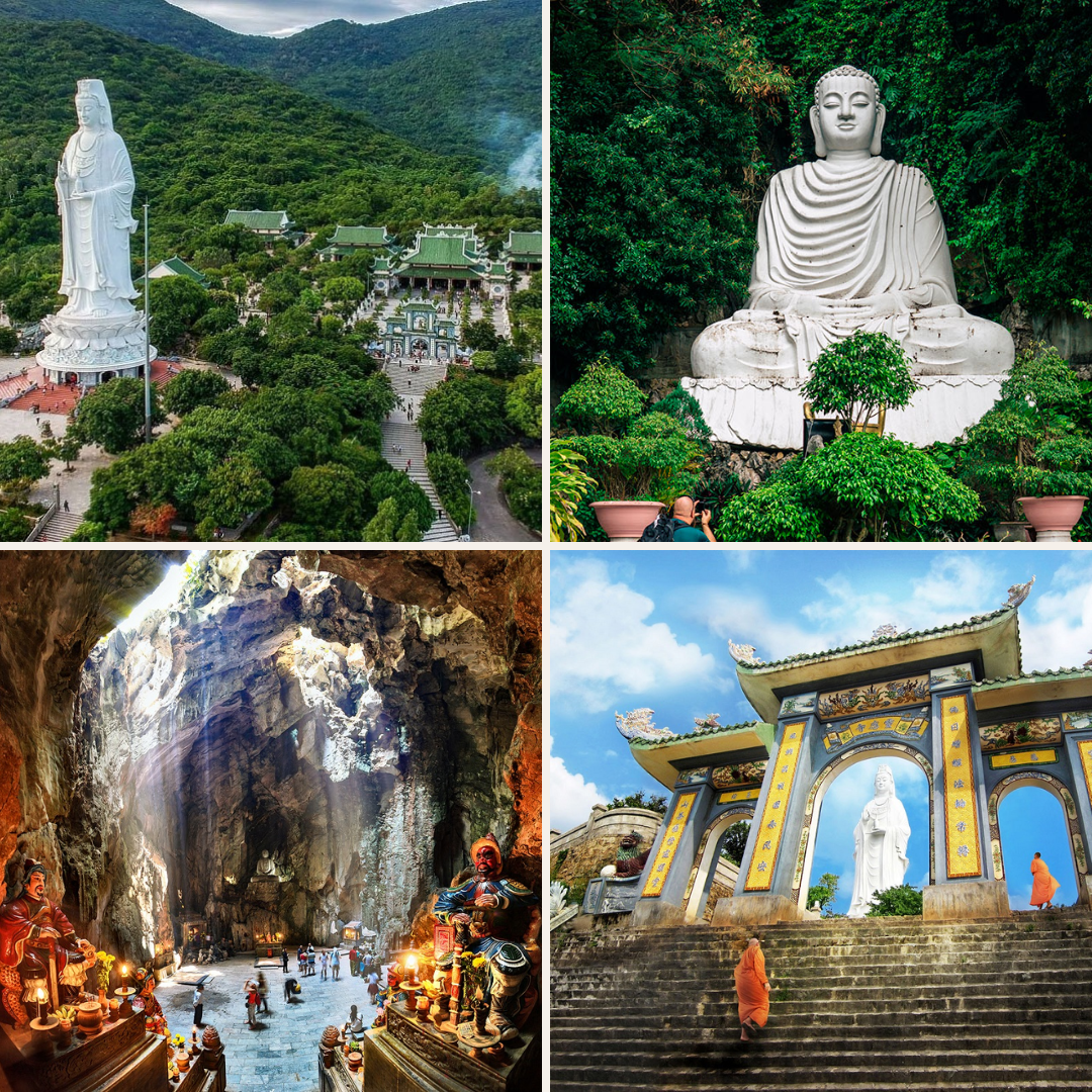 Ngũ Hành Sơn: Là một trong những danh thắng nổi tiếng bậc nhất của Đà Nẵng, bao gồm năm ngọn núi đá vôi mang tên Kim, Mộc, Thủy, Hỏa, Thổ – tượng trưng cho ngũ hành trong triết lý phương Đông. Không chỉ gây ấn tượng bởi vẻ đẹp thiên nhiên hùng vĩ, nơi đây còn là một không gian tâm linh độc đáo với hệ thống chùa chiền cổ kính và các hang động huyền bí. Du khách đến Ngũ Hành Sơn có thể tham quan các địa điểm tiêu biểu như chùa Tam Thai, chùa Linh Ứng, động Huyền Không, động Âm Phủ, đồng thời chiêm ngưỡng toàn cảnh thành phố Đà Nẵng từ độ cao lý tưởng.