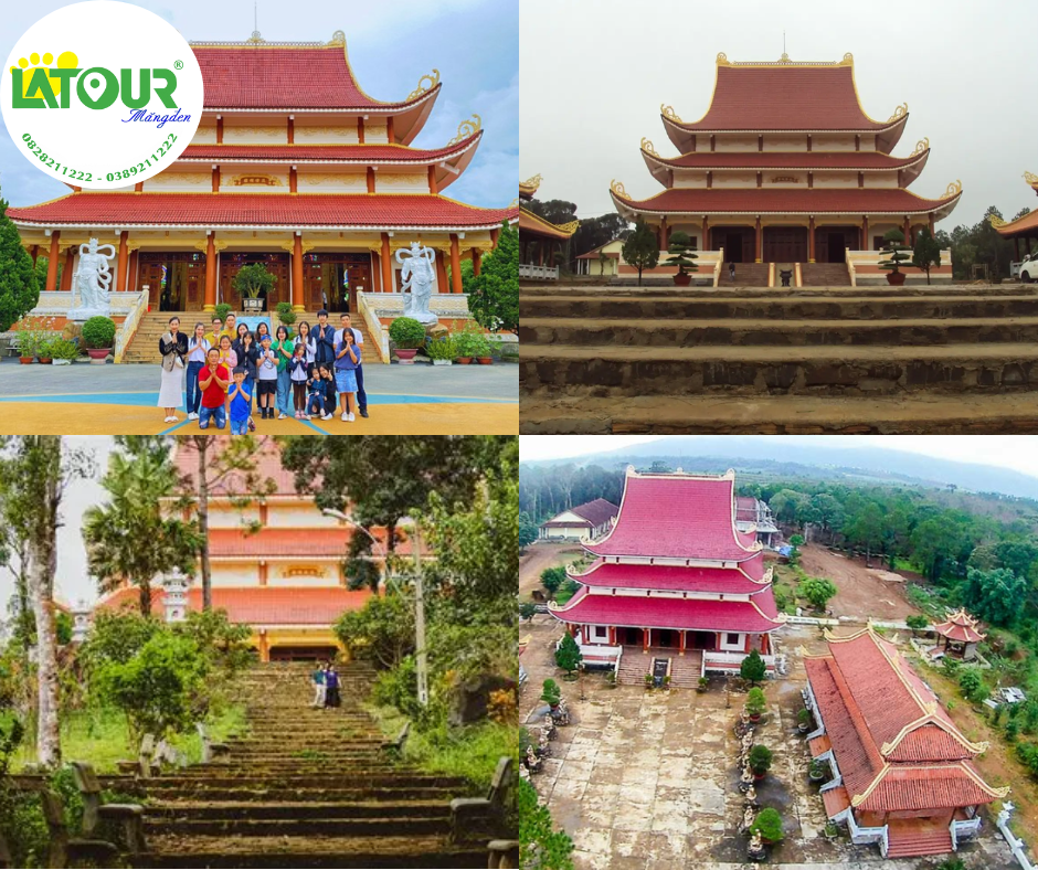 - Chùa Khánh Lâm: ngôi chùa tọa lạc trên đồi cao, bao quanh là rừng thông xanh mát. Không gian thanh tịnh, tách biệt khỏi sự ồn ào, mang đến cảm giác an yên và là điểm tham quan tâm linh không thể bỏ qua khi đến Măng Đen.