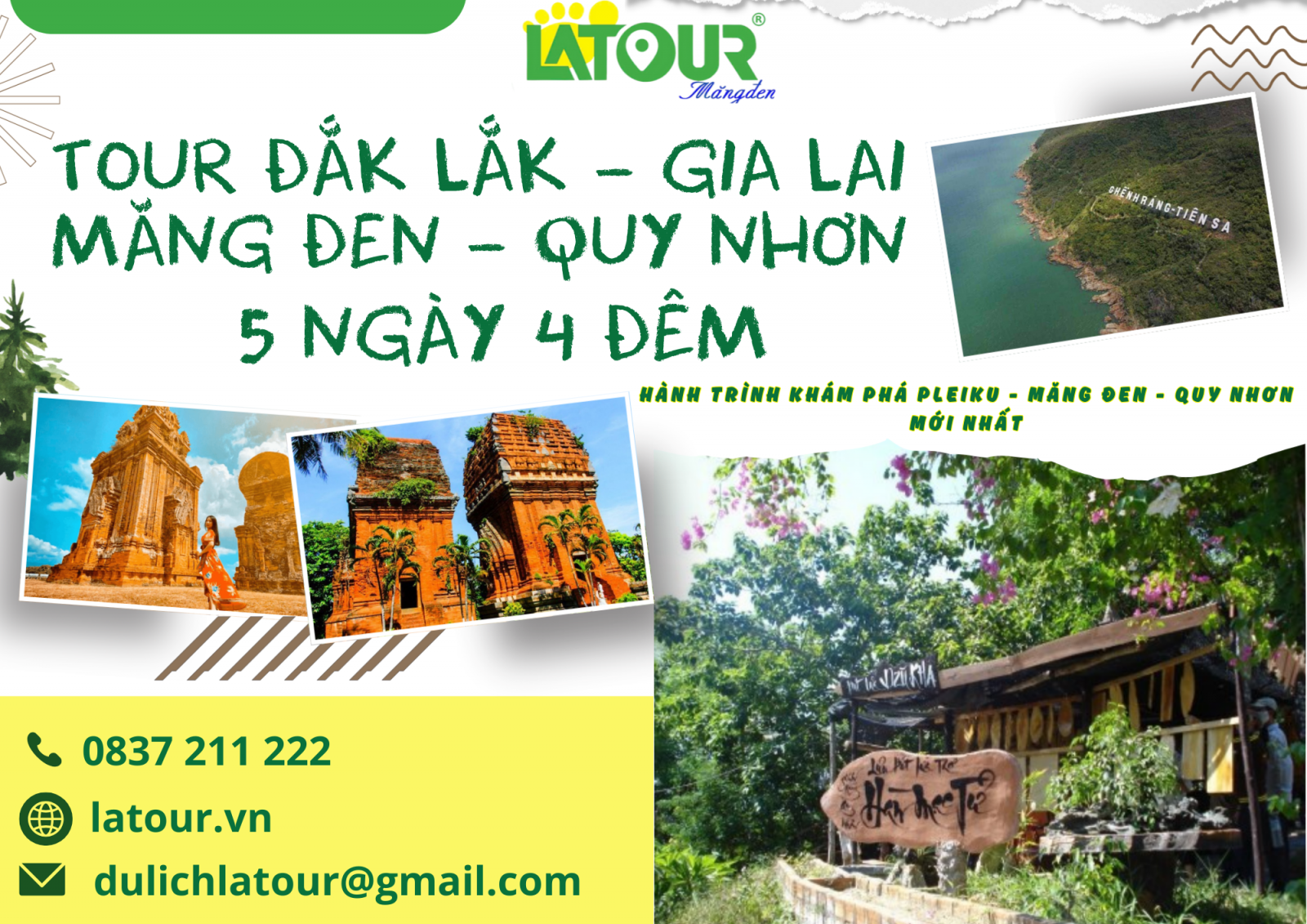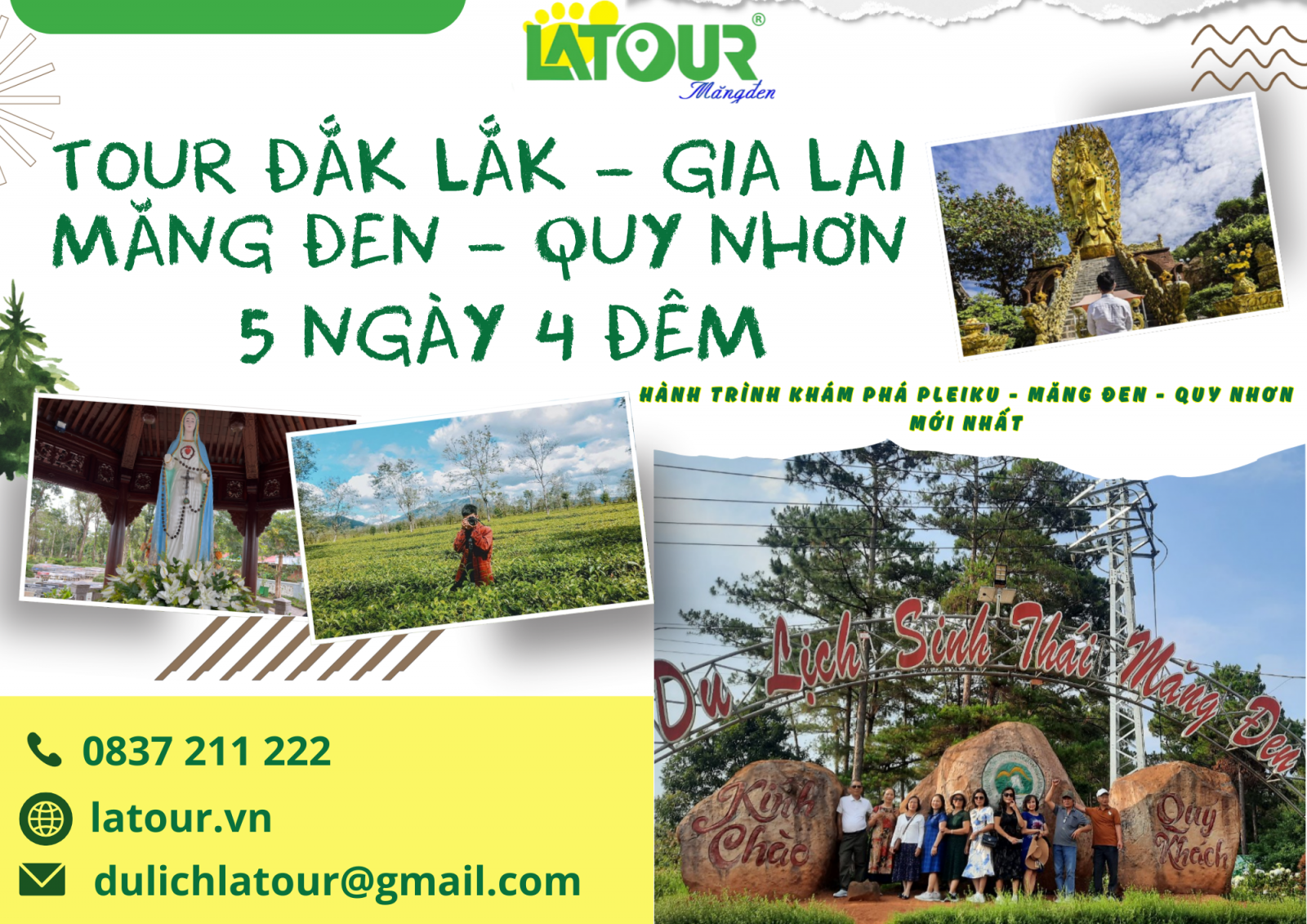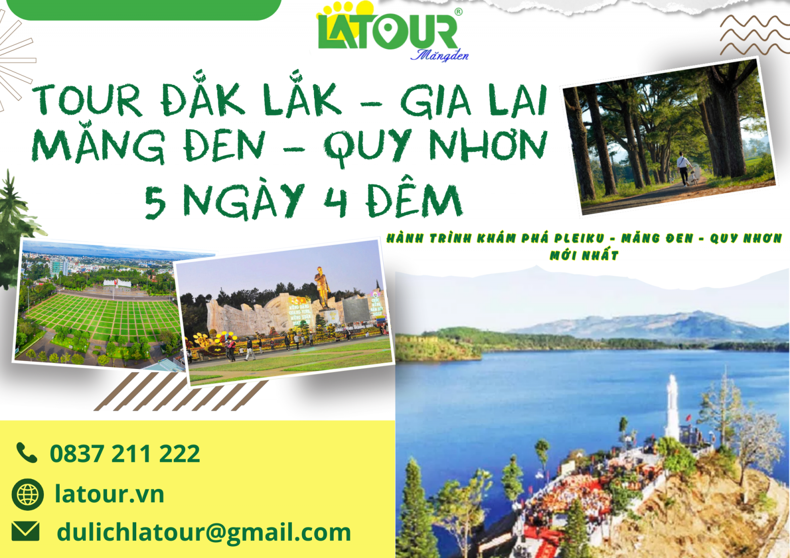 Tour Đắk Lắk – Gia Lai – Măng Đen – Quy Nhơn 5 ngày 4 đêm được LATOUR thiết kế riêng cho du khách khu vực Đắk Lắk, với lịch trình hợp lý, khởi hành thuận tiện và dịch vụ trọn gói, giúp hành trình khám phá Tây Nguyên – miền Trung trở nên nhẹ nhàng và thoải mái. Nhờ sự am hiểu điểm đến cùng kinh nghiệm tổ chức tour, LATOUR chuẩn bị chu đáo từ phương tiện di chuyển, khách sạn lưu trú đến các hoạt động tham quan, mang đến trải nghiệm trọn vẹn và an tâm cho quý khách.
