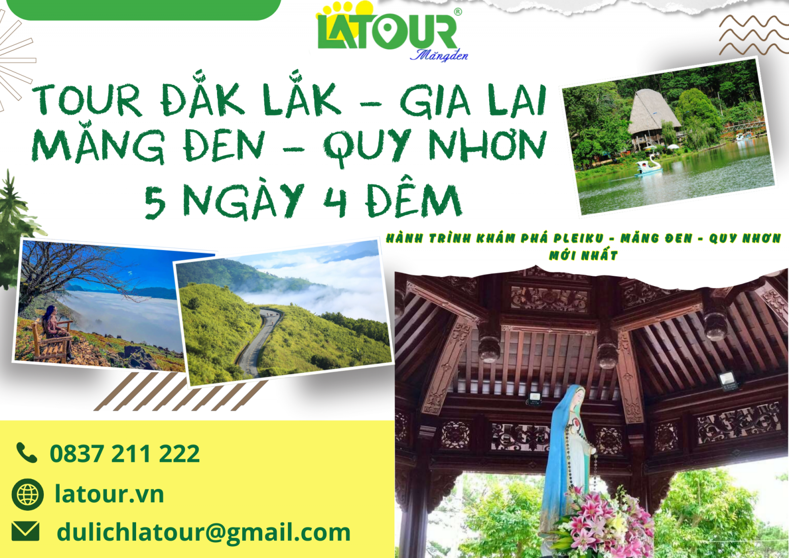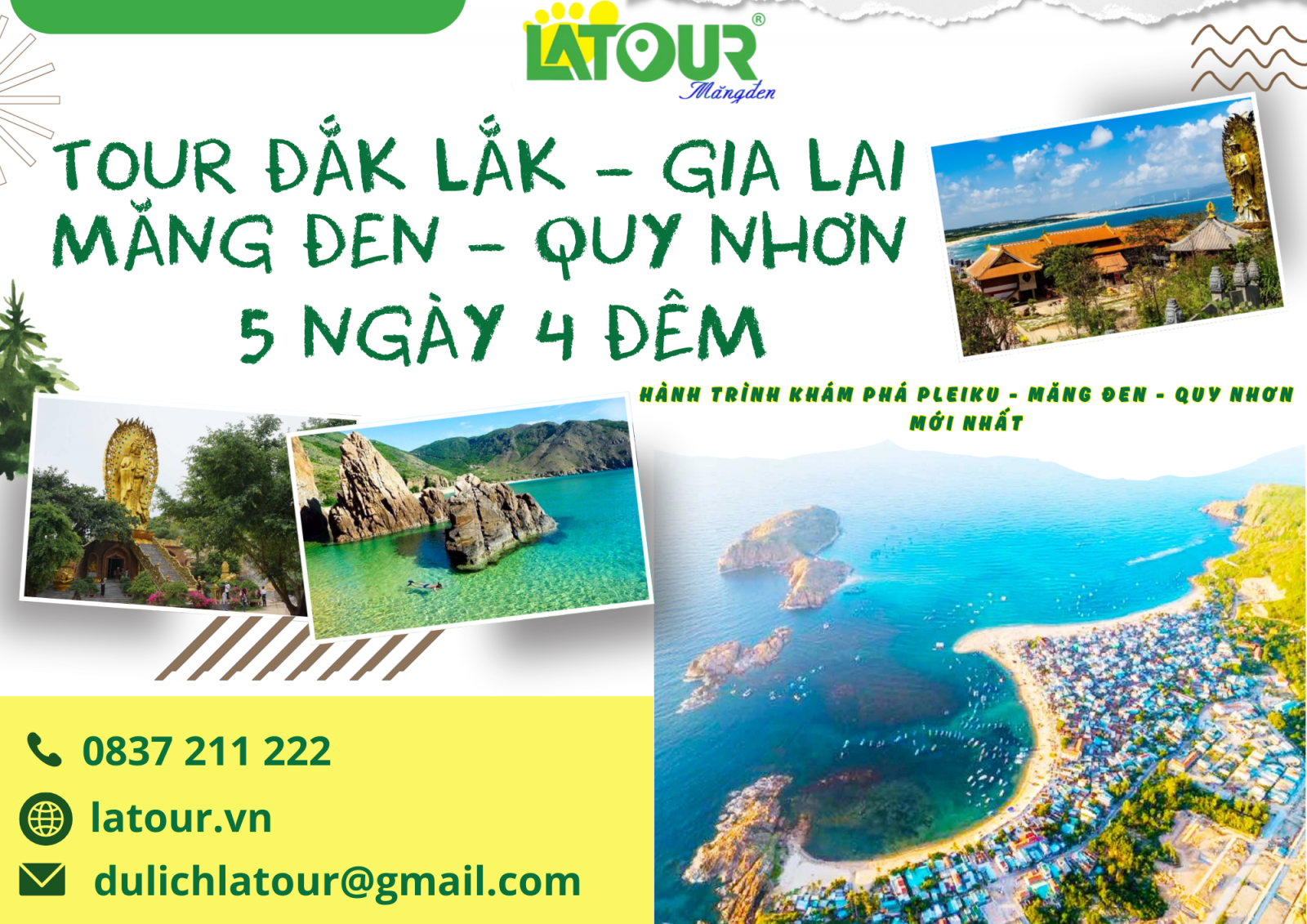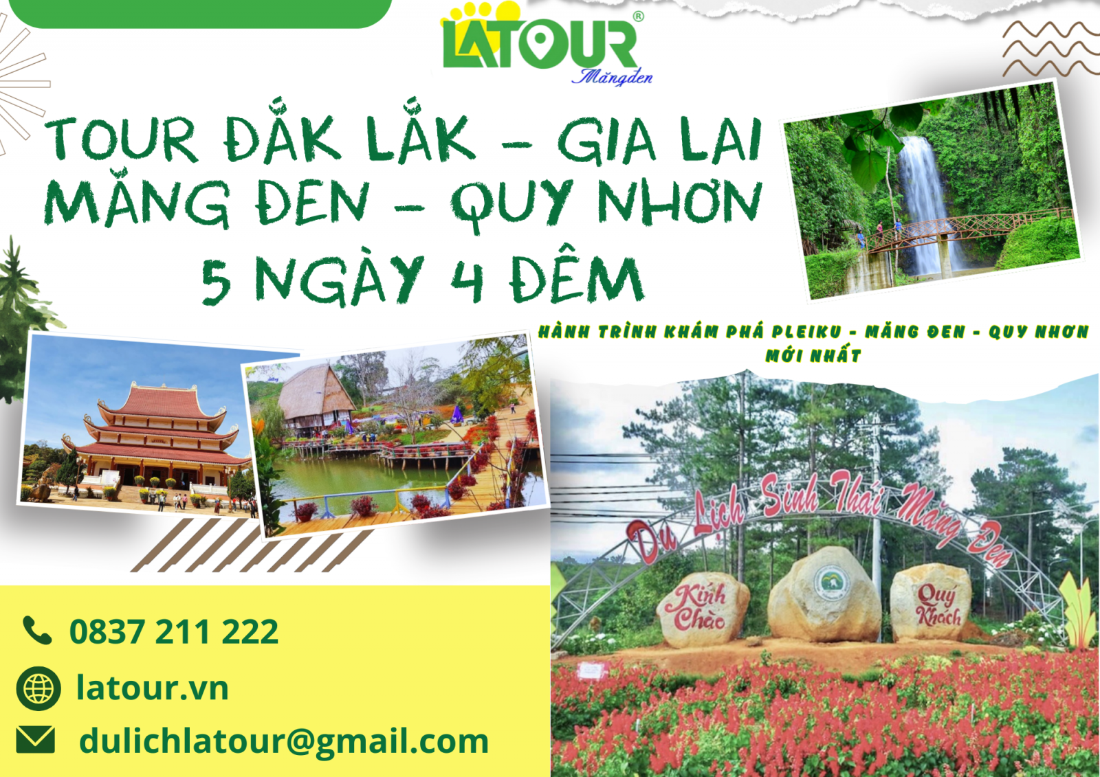 Tour Đắk Lắk – Gia Lai – Măng Đen – Quy Nhơn 5 ngày 4 đêm được LATOUR thiết kế riêng cho du khách khu vực Đắk Lắk, với lịch trình hợp lý, khởi hành thuận tiện và dịch vụ trọn gói, giúp hành trình khám phá Tây Nguyên – miền Trung trở nên nhẹ nhàng và thoải mái. Nhờ sự am hiểu điểm đến cùng kinh nghiệm tổ chức tour, LATOUR chuẩn bị chu đáo từ phương tiện di chuyển, khách sạn lưu trú đến các hoạt động tham quan, mang đến trải nghiệm trọn vẹn và an tâm cho quý khách.
