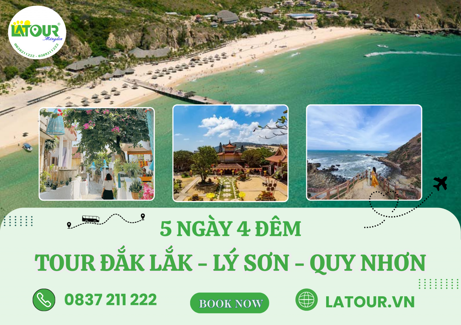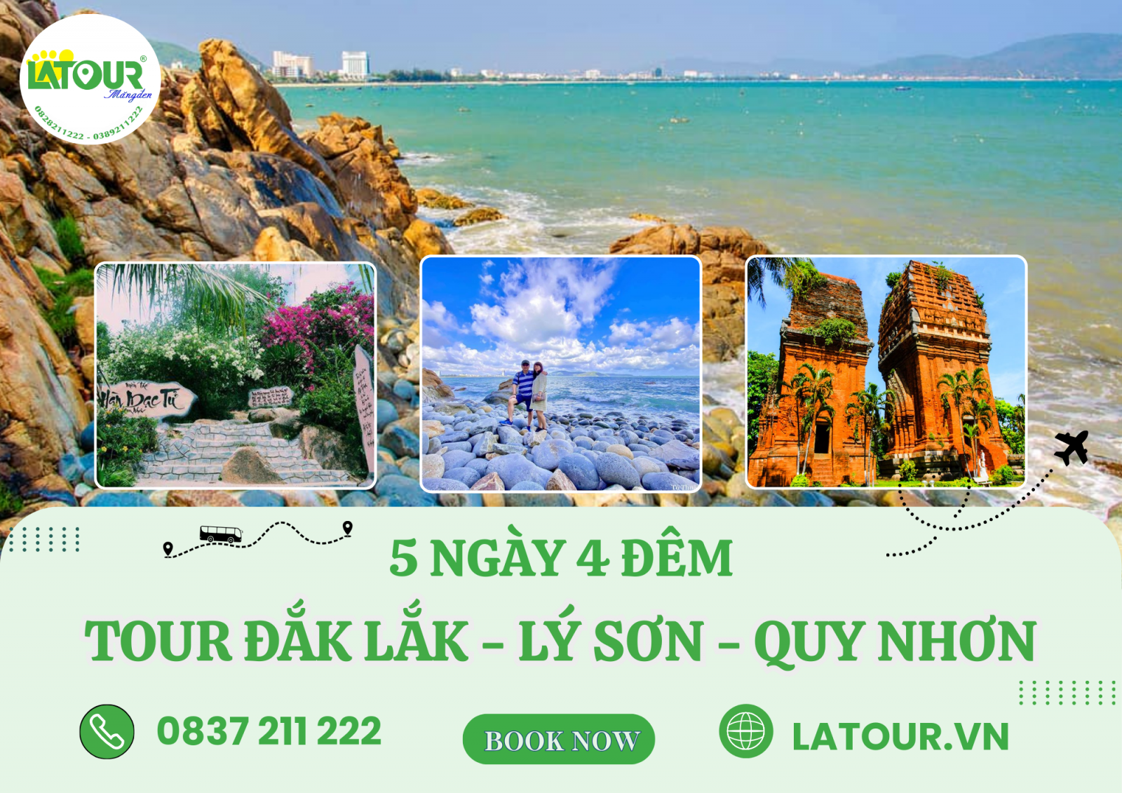 Tour Đắk Lắk – Lý Sơn – Quy Nhơn 5 ngày 4 đêm của LATOUR không đơn thuần là một chuyến đi, mà là hành trình được “đo ni đóng giày” để du khách tận hưởng trọn vẹn cảm giác thư thái và trải nghiệm có chiều sâu. Mỗi chặng đường được sắp xếp khoa học, nhịp điệu vừa đủ để bạn thong thả khám phá, nghỉ ngơi đúng lúc và cảm nhận rõ nét vẻ đẹp của biển đảo miền Trung cùng không gian văn hóa đặc trưng vùng duyên hải.