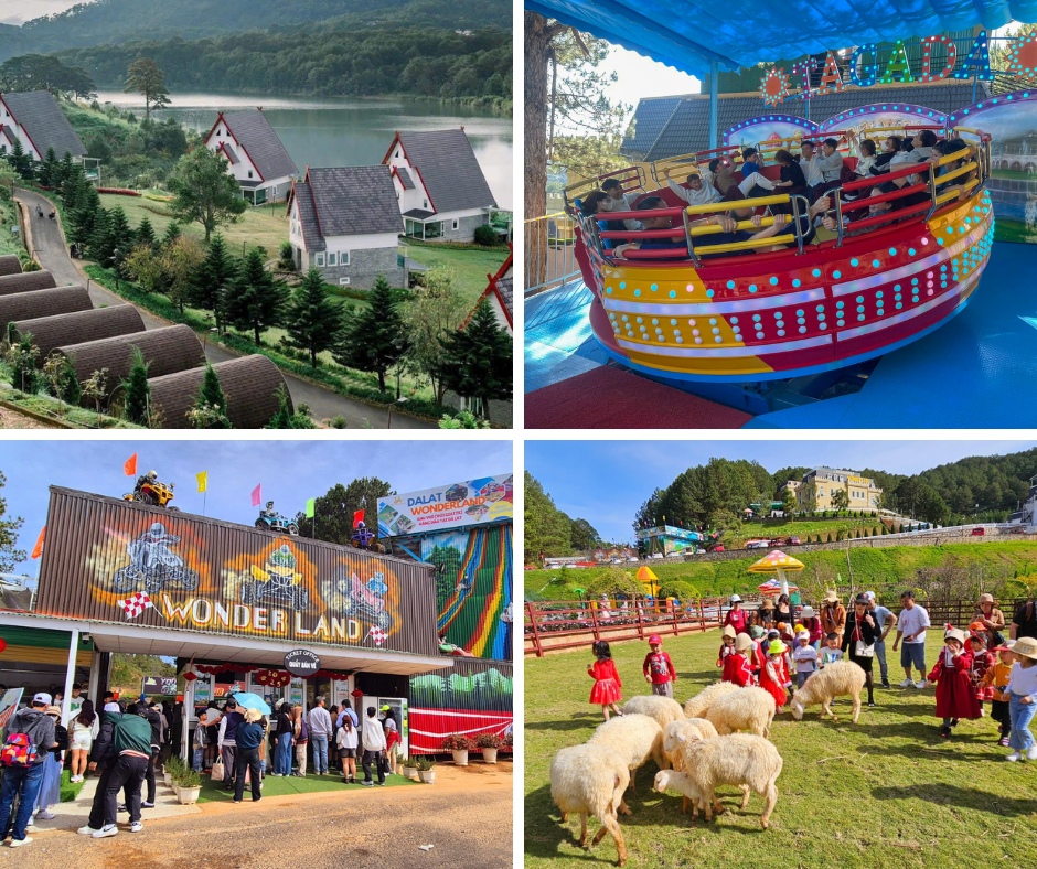 - Wonderland Đà Lạt: Đây là khu vui chơi nằm nổi tiếng với những công trình kiến trúc độc đáo và đầy màu sắc. Tại đây, đoàn sẽ được tham gia loạt những trò chơi từ nhẹ nhàng đến gay cấn mạo hiểm. Phù hợp với từng đối tượng từ người lớn đến trẻ em đều có những trò chơi phù hợp để tham gia. Wonderland đã thu hút được rất nhiều khách trong nước và cả nước ngoài bởi những trải nghiệm vô cùng thú vị và mới mẻ ở đây.