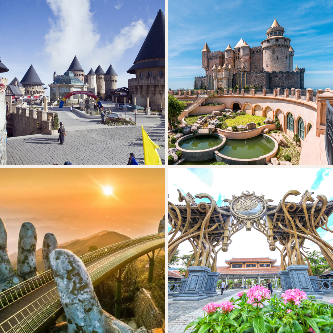 - Cầu Vàng: Biểu tượng nổi tiếng toàn cầu, với thiết kế độc đáo gồm hai bàn tay khổng lồ bằng đá nâng đỡ cây cầu vàng óng, tạo cảm giác như đang lạc vào chốn thần tiên. Đây cũng là điểm check-in không thể bỏ lỡ khi đi tour Đà Nẵng.