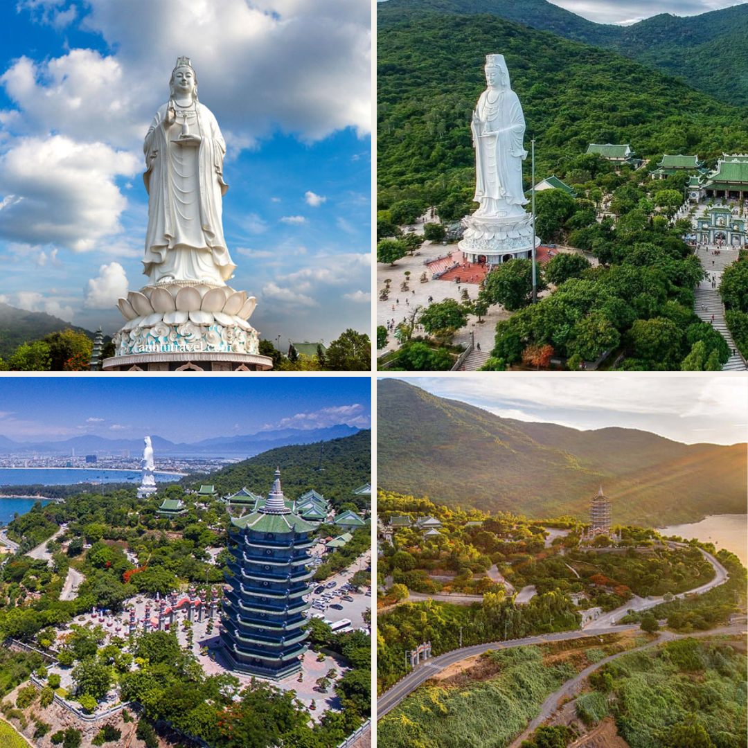 - Chùa Linh Ứng: một trong những ngôi chùa linh thiêng và nổi tiếng nhất miền Trung Việt Nam. Nằm ở vị trí tuyệt đẹp trên bán đảo Sơn Trà, chùa không chỉ là điểm đến tâm linh thu hút đông đảo phật tử và du khách thập phương, mà còn là nơi mang đến tầm nhìn toàn cảnh ấn tượng bao quát thành phố Đà Nẵng, bãi biển Mỹ Khê thơ mộng và vùng biển Đông bao la. Điểm nhấn nổi bật tại đây là tượng Phật Bà Quan Âm cao 67 mét