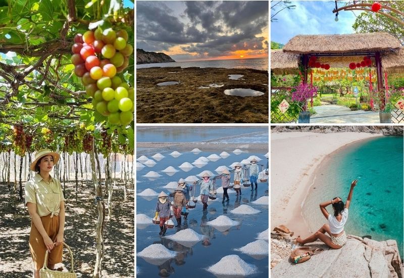 - Vườn Nho: Tham quan những vườn nho xanh mướt, tìm hiểu cách chăm sóc và sản xuất nho đặc trưng của Ninh Thuận. Ngoài ra du khách còn có thể thưởng thức các sản phẩm như rượu vang nho hay nho tươi thơm ngon.
