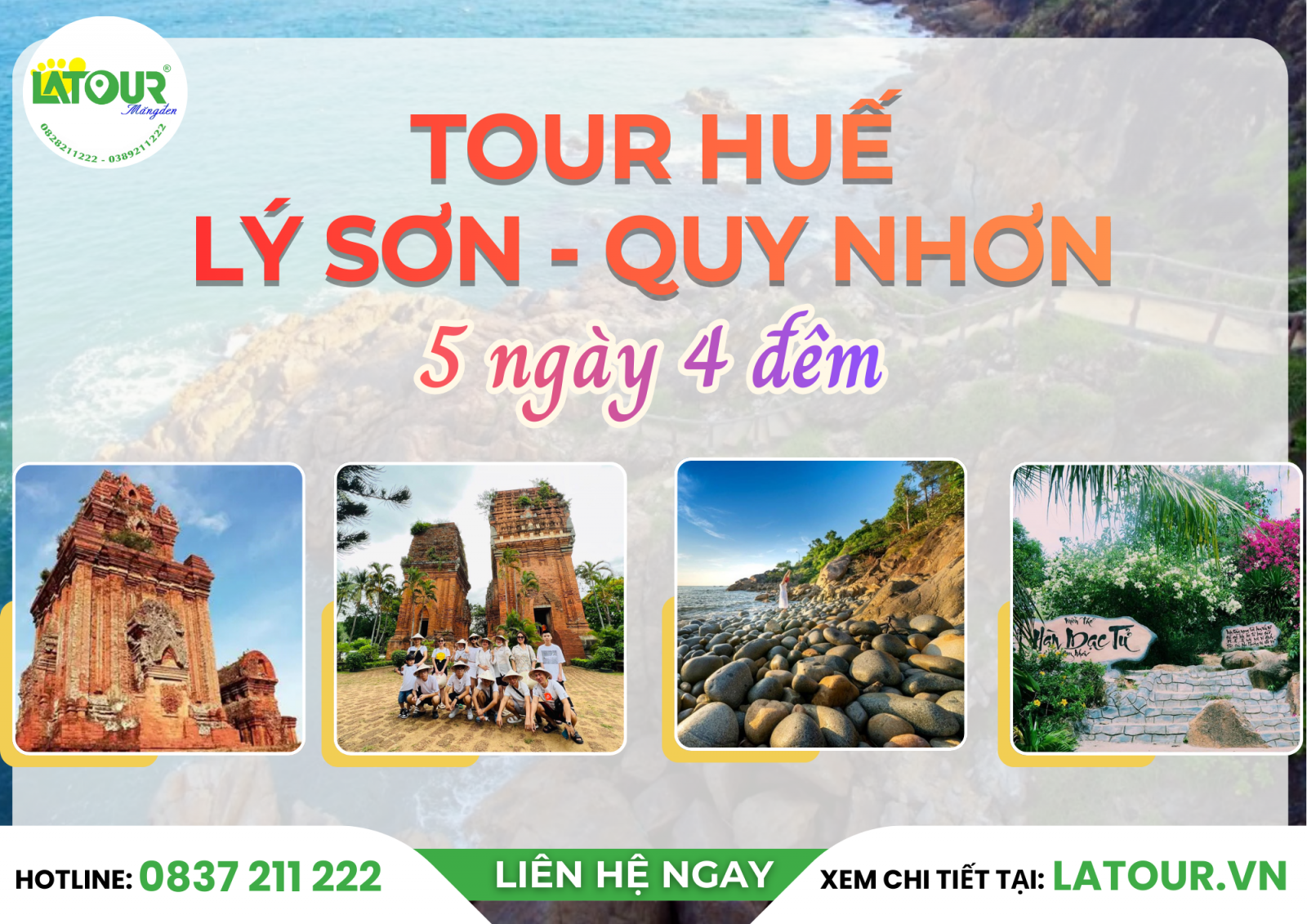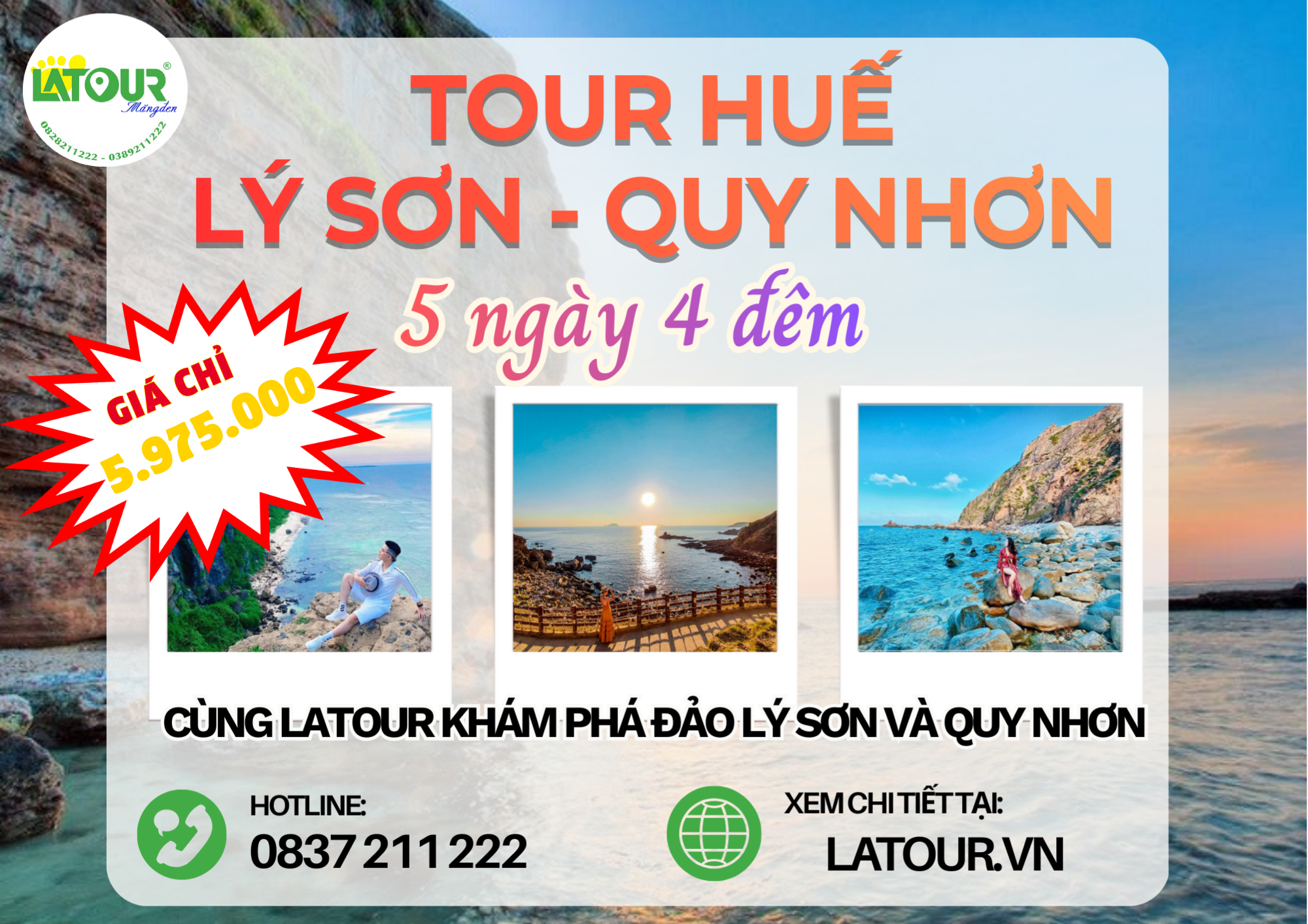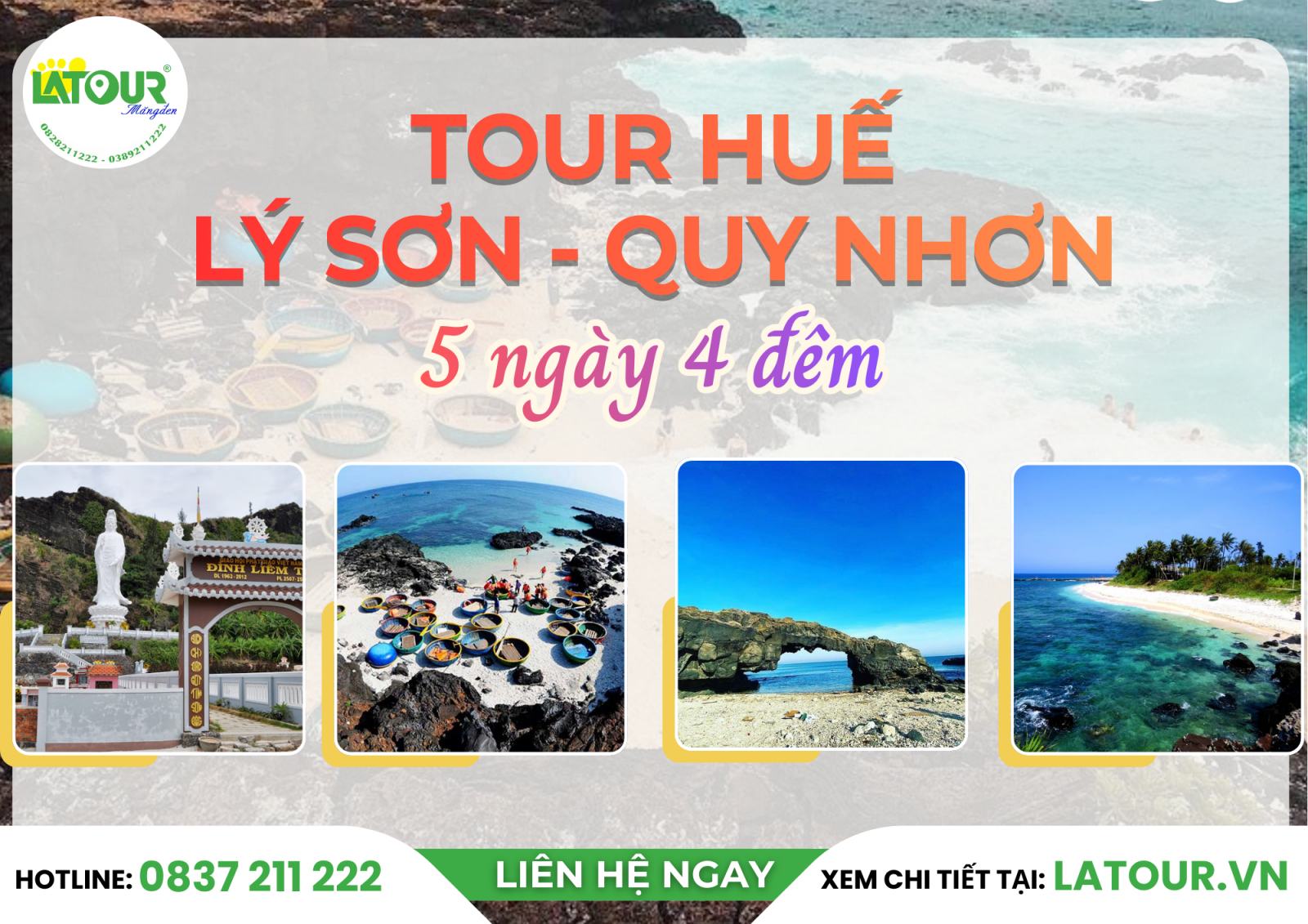Tour Lý Sơn – Quy Nhơn 5 ngày 4 đêm khởi hành từ Huế do LATOUR tổ chức mang đến trải nghiệm du lịch biển miền Trung với lịch trình khoa học và linh hoạt. Chuyến đi đưa du khách chạm đến Lý Sơn – đảo tiền tiêu giàu giá trị thiên nhiên và lịch sử, nổi bật với cảnh quan biển đảo nguyên sơ và địa hình núi lửa đặc trưng. Tiếp đến là Quy Nhơn, phố biển đang vươn mình mạnh mẽ nhưng vẫn giữ được nét yên bình, mộc mạc. Sự kết hợp giữa danh thắng thiên nhiên, không gian văn hóa – tâm linh và các điểm tham quan đặc trưng giúp hành trình trở nên cân bằng, thư thái và đáng nhớ.
