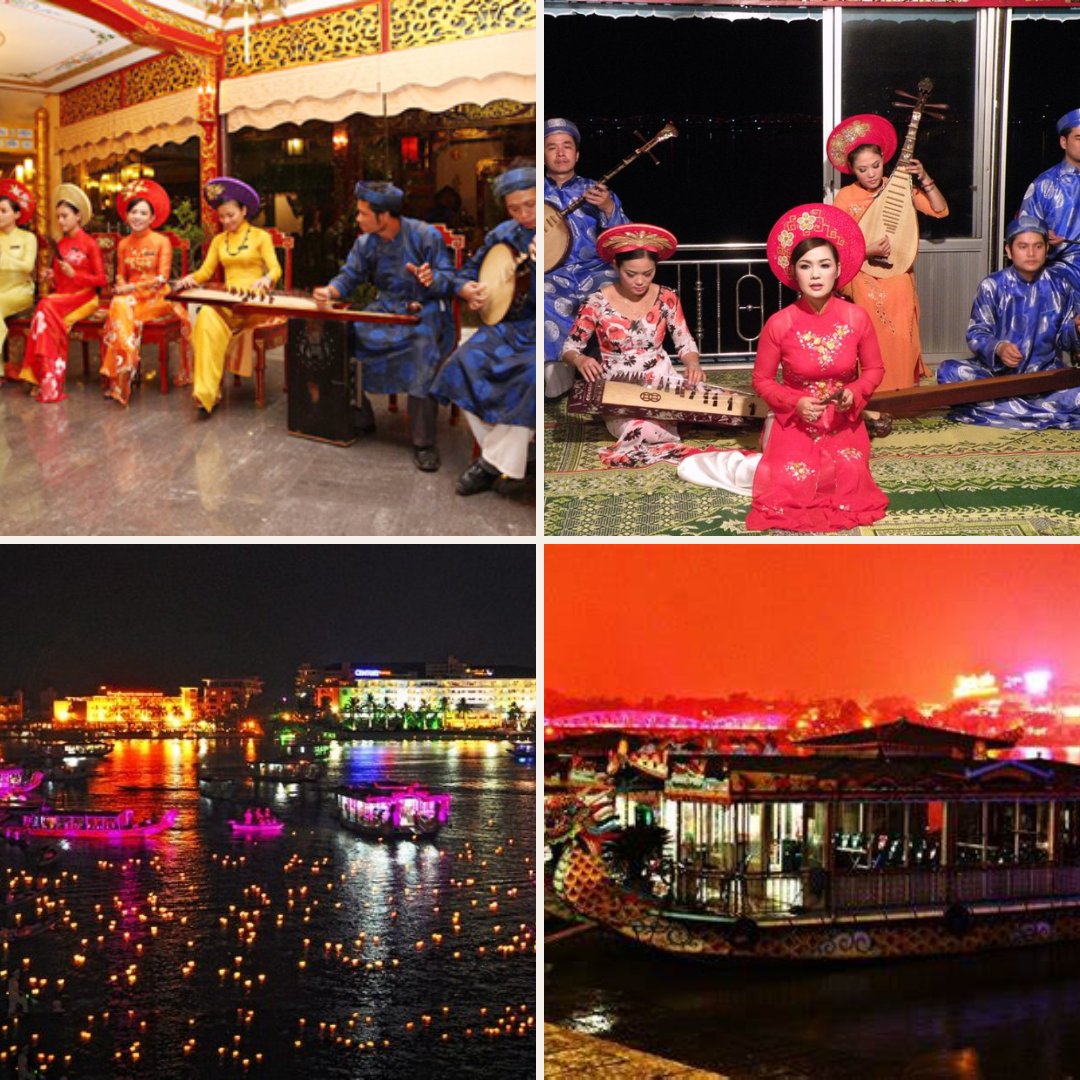 19:00 Đoàn tự do tham quan Huế về đêm với những trải nghiệm độc đáo như ngắm dòng sông Hương lung linh trong ánh đèn, thưởng thức ca Huế truyền thống, thả đèn hoa đăng trên sông và khám phá ẩm thực địa phương (chi phí tự túc).