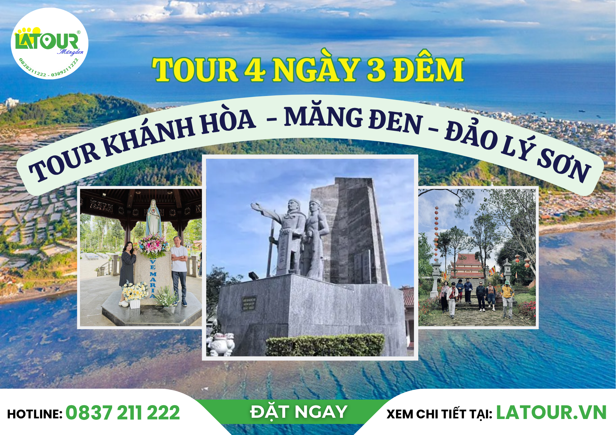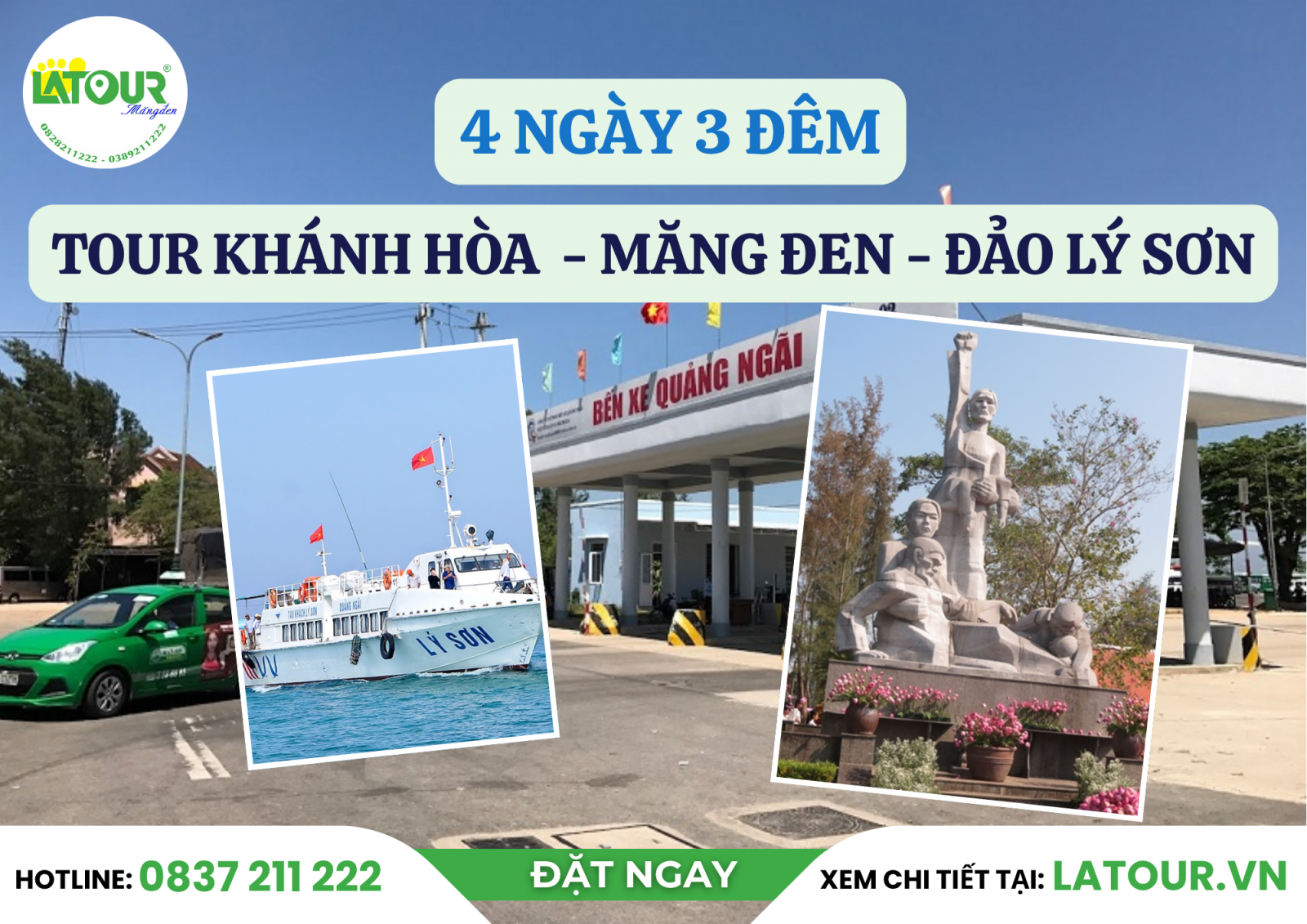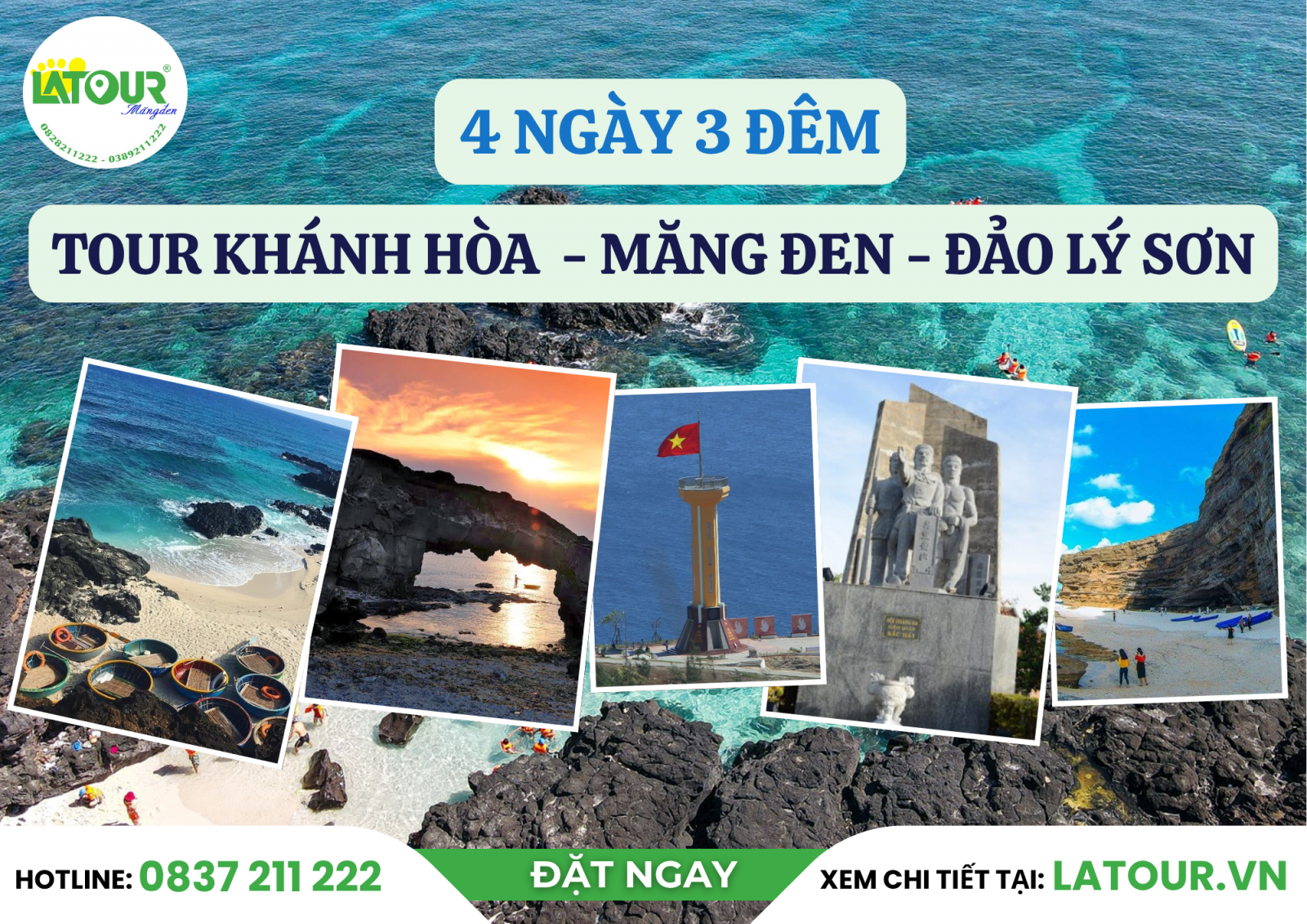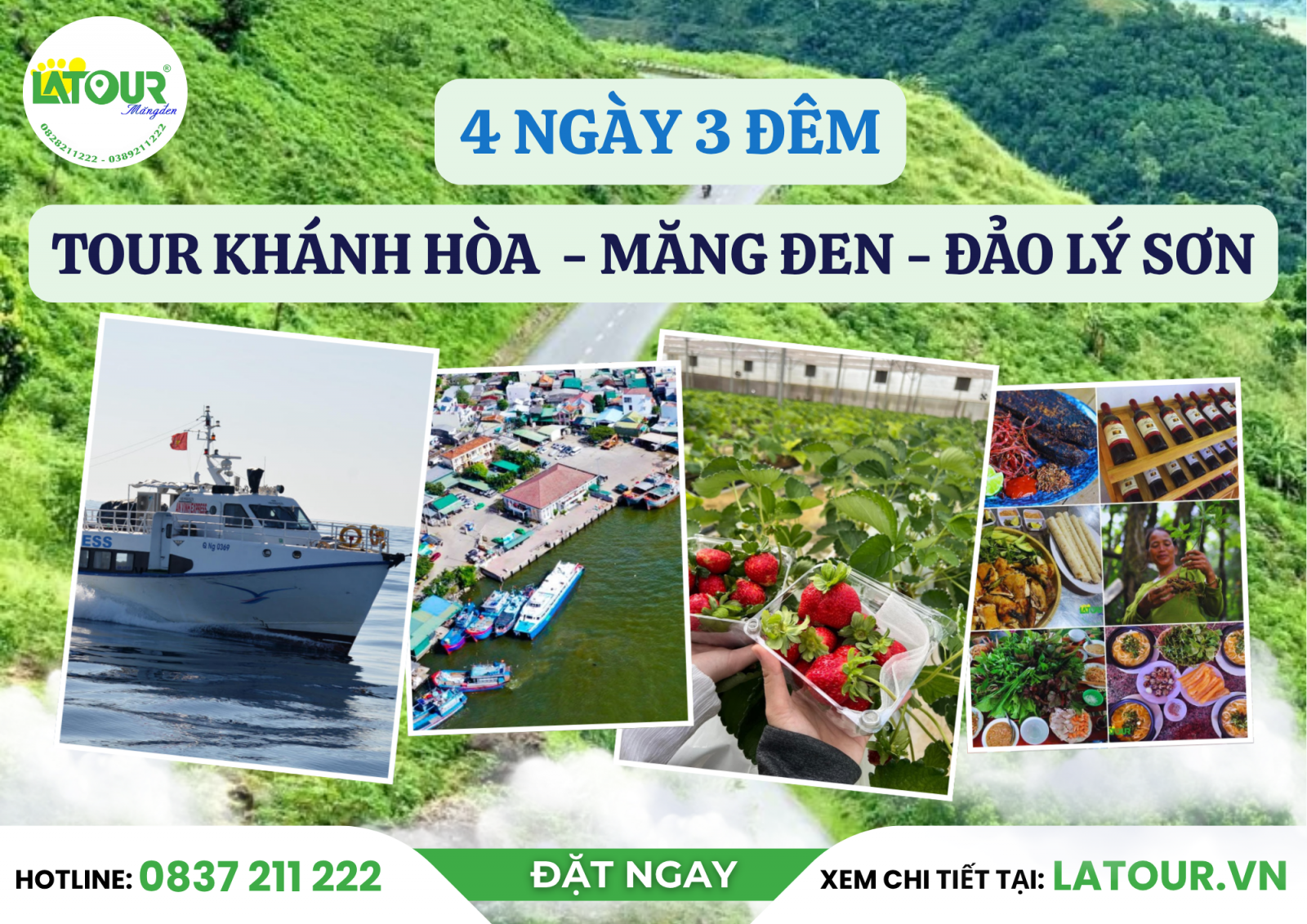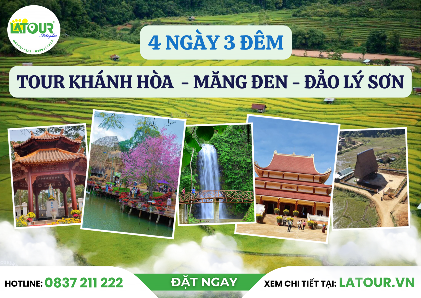 Bắt đầu hành trình “chạm vào bình yên” cùng Công ty Du lịch LATOUR trong Tour Khánh Hòa – Măng Đen – Đảo Lý Sơn 4 ngày 3 đêm. Chuyến đi mở ra hai thế giới đối lập mà hài hòa – Măng Đen ẩn mình giữa đại ngàn xanh thẳm với sương giăng huyền ảo, và hòn đảo Lý Sơn giữa biển khơi với màu nước ngọc lam và những vách đá hùng vĩ. Từng điểm đến trong hành trình là một lát cắt của thiên nhiên và văn hóa, quý khách được tận hưởng không khí trong lành, cảm nhận nhịp sống chậm rãi, thả mình giữa đất trời khoáng đạt.