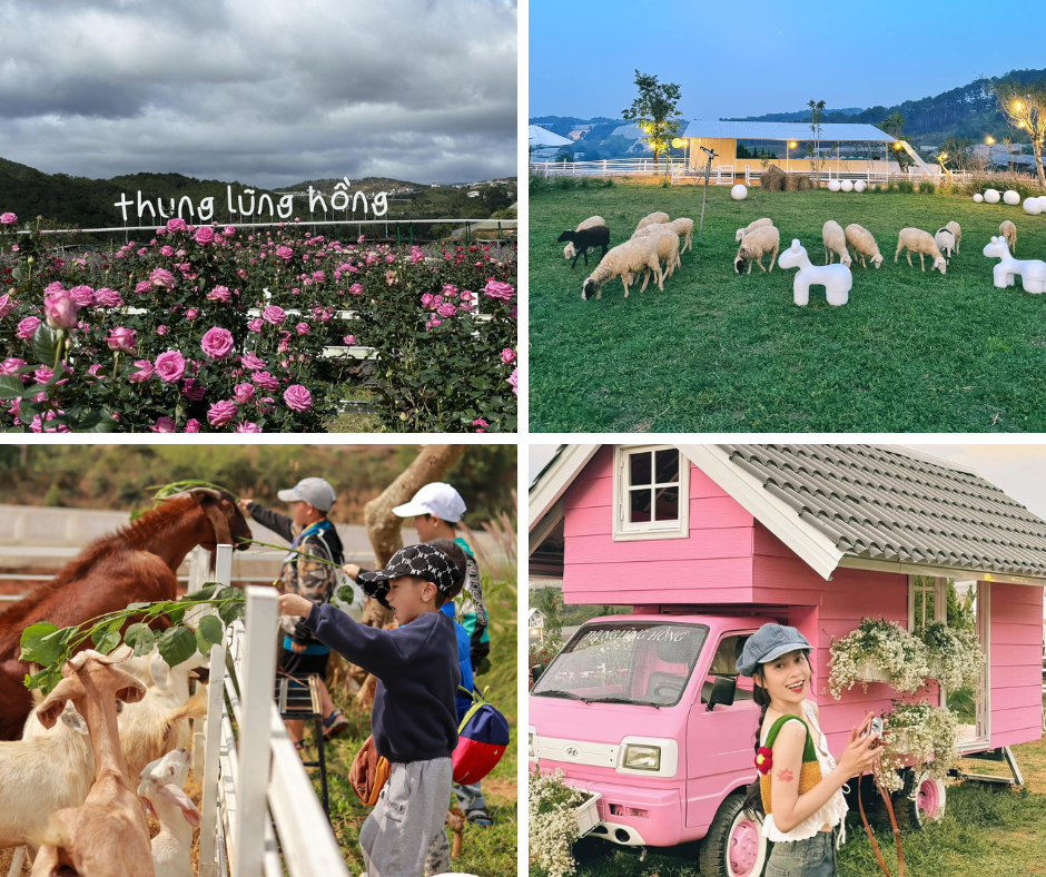 - Thung Lũng Hồng: Điểm đến tuyệt vời với cánh đồng thảo nguyên rộng lớn và các vườn hoa hồng khoe sắc. Đây không chỉ là nơi tham quan, mà còn là khu nghỉ dưỡng với nhiều hoạt động thú vị, như hái dâu, chăm sóc thú cưng và tham gia các sự kiện vui nhộn. Điểm nhấn của thung lũng là đảo Bướm và thác Tình Nhân, mang lại không gian lãng mạn và thơ mộng. Đây là nơi bạn có thể thư giãn, tản bộ và tận hưởng vẻ đẹp thiên nhiên trong không khí yên bình của Đà Lạt.