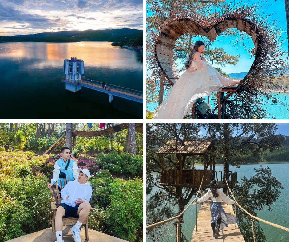 - Hồ Tuyền Lâm: nằm ở ngoại ô thành phố Đà Lạt, hồ được bao bọc bởi rừng thông xanh mướt, tạo nên một không gian thiên nhiên hùng vĩ và yên bình. Đến đây, quý khách được hòa mình với cảnh đẹp thiên nhiên, ánh nắng trong xanh cùng mặt hồ lấp lánh những làn nước nhẹ nhàng. Hồ Tuyền Lâm điểm đến lý tưởng cho những ai thích check in khi đến với Đà Lạt