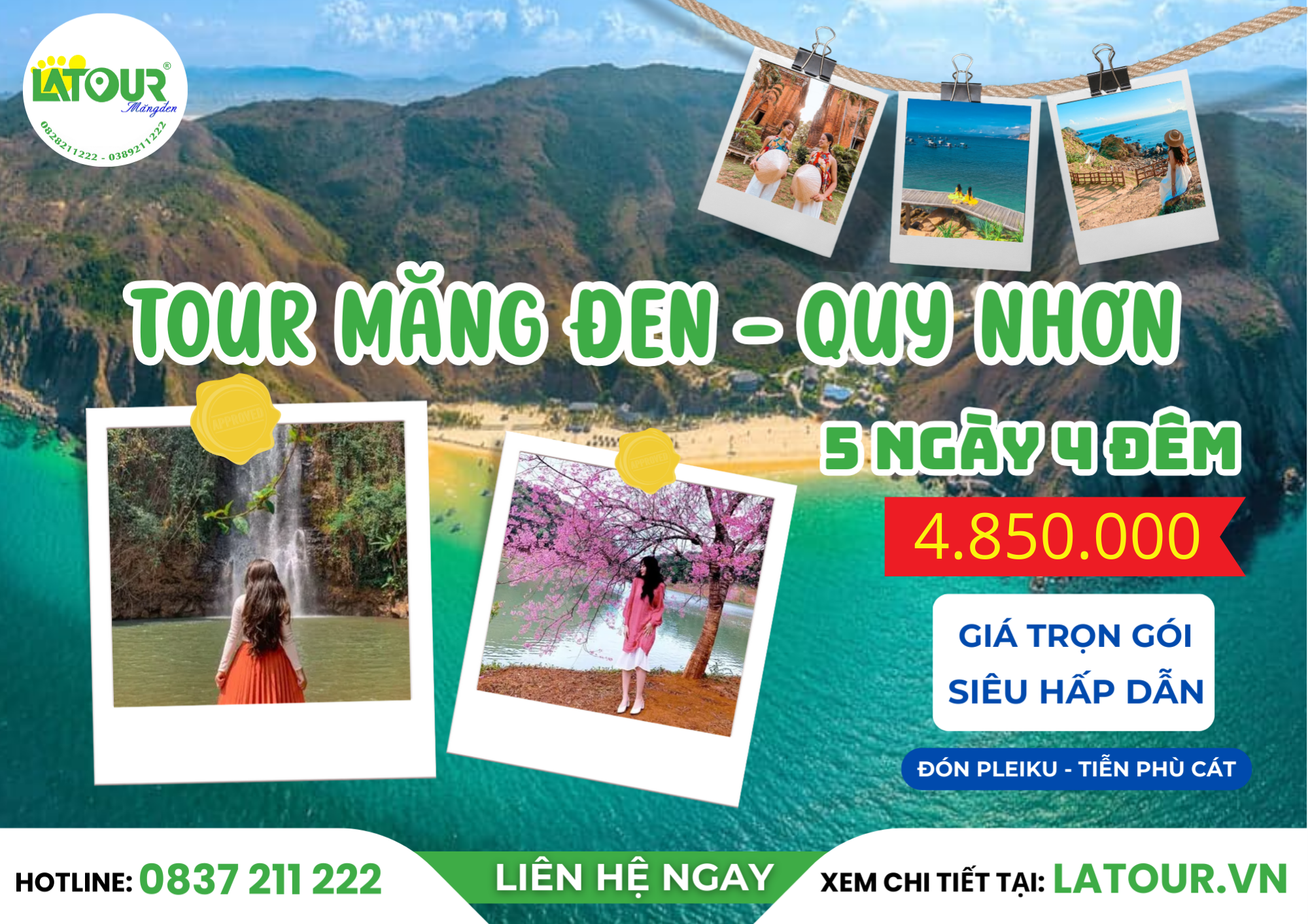 Tour Măng Đen – Quy Nhơn 5 ngày 4 đêm do LATOUR xây dựng là hành trình cân bằng hoàn hảo giữa cao nguyên xanh mát và miền biển rực rỡ nắng gió. Mở ra không gian nghỉ dưỡng nhẹ nhàng giữa đại ngàn Tây Nguyên hay Quy Nhơn quyến rũ với đường bờ biển trong xanh, ghềnh đá kỳ vĩ, làng chài mộc mạc và nhịp sống hiền hòa. Sự giao thoa giữa vẻ đẹp trầm lắng của núi rừng và nét phóng khoáng của biển khơi tạo nên một chuyến đi đa sắc thái, vừa thư giãn, vừa giàu trải nghiệm, phù hợp cho những ai muốn tận hưởng trọn vẹn thiên nhiên và cảm xúc.