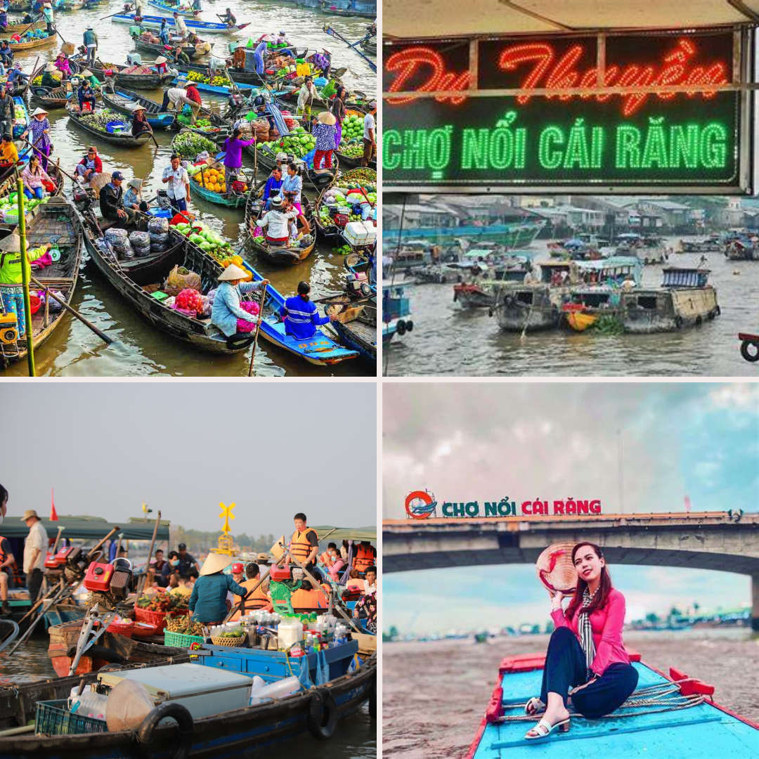 - Chợ Nổi Cái Răng: một trong những chợ nổi lớn và nổi tiếng nhất ở miền Tây Nam Bộ. Mỗi sáng sớm, hàng trăm ghe, thuyền tụ họp tấp nập trên mặt nước, bày bán đa dạng các mặt hàng, đặc biệt là trái cây miệt vườn như xoài, chôm chôm, dứa, sầu riêng... Đến với chợ nổi Cái Răng, du khách không chỉ được trải nghiệm không khí buôn bán nhộn nhịp, mà còn có thể thưởng thức món ăn dân dã ngay trên thuyền như bún riêu, hủ tiếu, cà phê... và cảm nhận sự mộc mạc, chân tình của con người miền Tây.