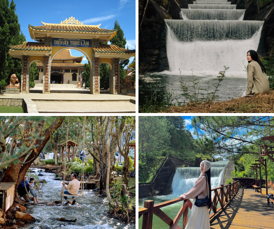- Thiền viện Trúc Lâm: Thiện viện được thành lập từ năm 1994, là một ngôi chùa Thiền nằm trên đỉnh núi Phượng Hoàng. Nổi bật với kiến trúc đậm chất truyền thống, được bao quanh bởi không gian thiên nhiên hữu tình của núi rừng Đà Lạt. Đây là điểm đến tâm linh lý tưởng cho du khách và phật tử đến viếng thăm và tu tập, cảm nhận sự thanh tịnh và bình yêu cho tâm hồn.
