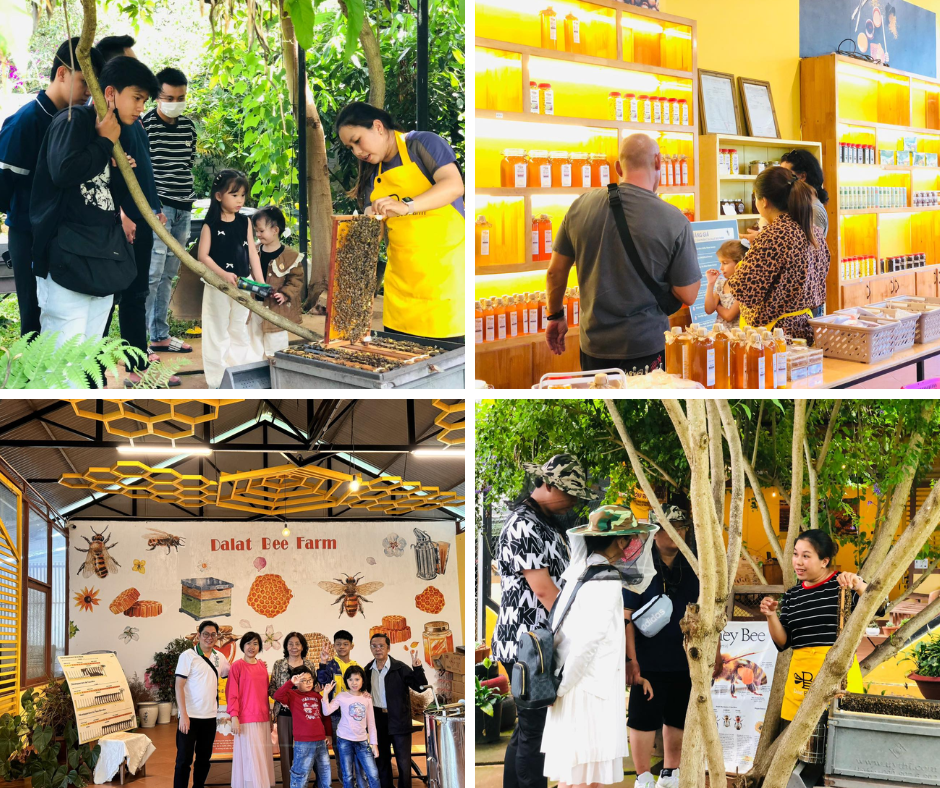 - Dalat Bee Farm – Nông trại Ong. Khi đến với nông trại Ong, quý khách thật sự có được thời gian thư giãn, trải nghiệm thật, thưởng thức mật ong tươi, rau củ quả sạch tại trang trại và lĩnh hội kiến thức đầy đủ nhất về ong mật và cảm nhận giá trị của lối sống hài hòa với môi trường. Quý khách tự do tản bộ, thong dong hít khí trời, ngắm cảnh đẹp bên bờ ao được trồng nhiều loài hoa đủ màu sắc rực rỡ với những chú ong, bướm và nhiều loại cây ăn quả,..đây cũng là nguồn cung cấp phấn hoa và mật lý tưởng cho các đàn ong quanh năm.