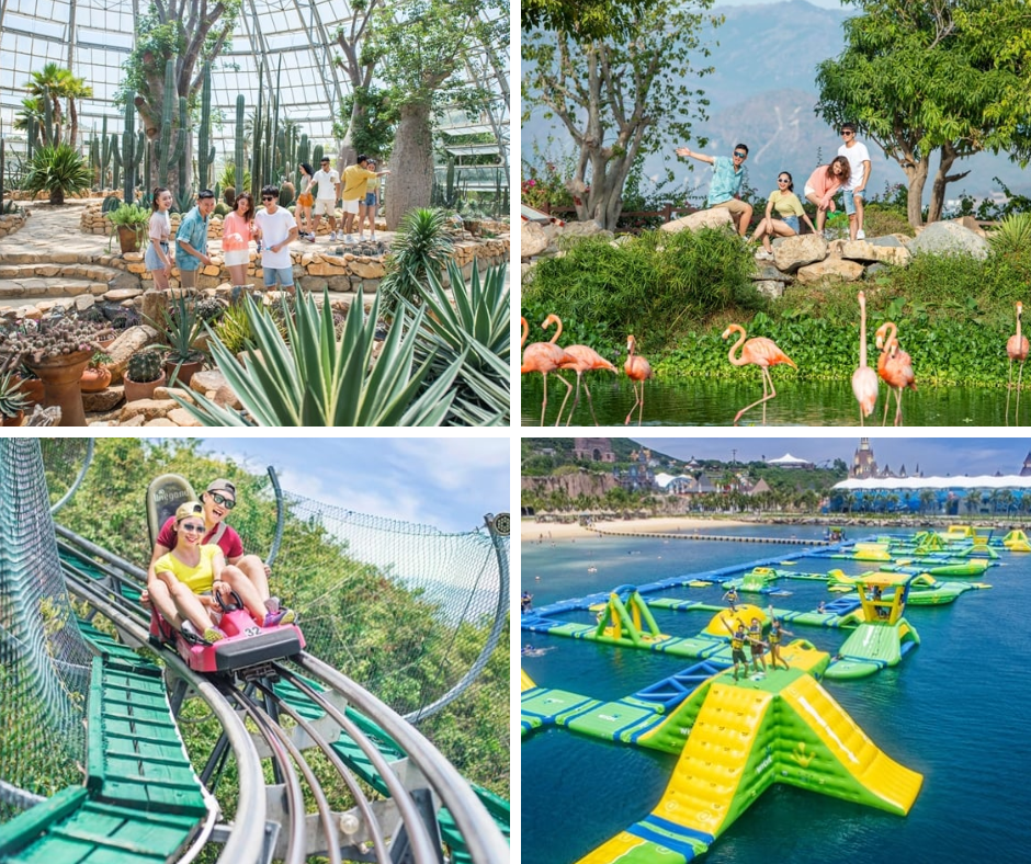 • Công viên nước: các trò chơi nước cảm giác từ nhẹ đến mạnh như dòng sông lười, trượt máng nước siêu dài, sóng thần và hố đen vũ trụ...