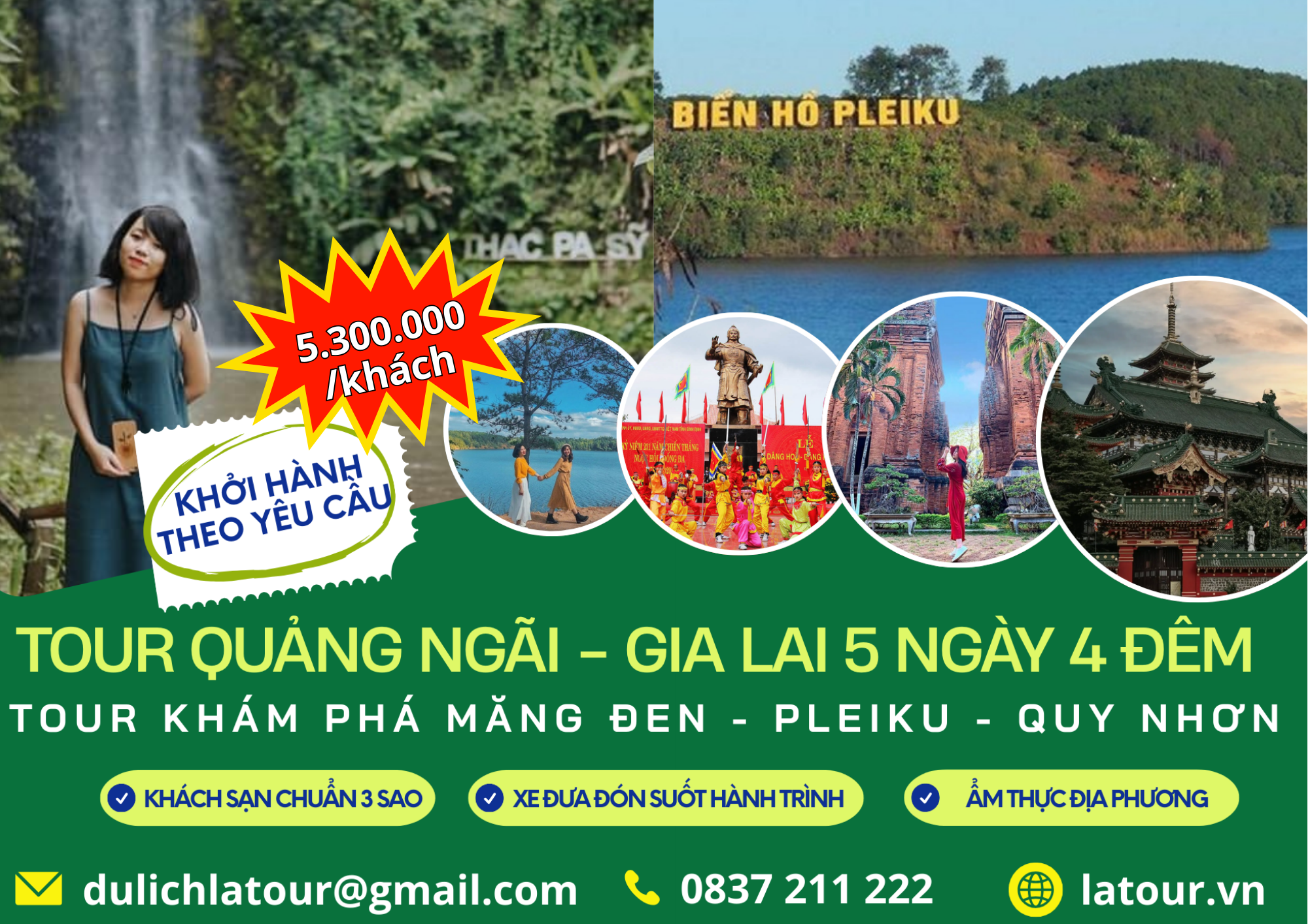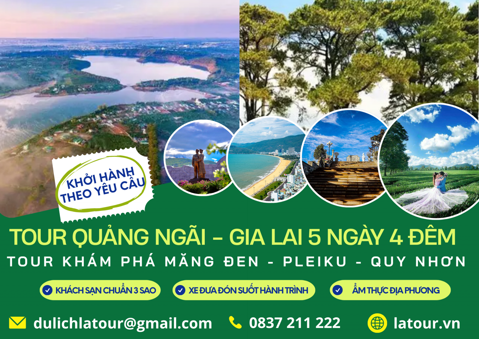 Tour Quảng Ngãi - Gia Lai - Măng Đen - Quy Nhơn 5 Ngày 4 Đêm được tổ chức theo hình thức tour trọn gói với lịch trình khoa học, LATOUR chú trọng cân bằng giữa di chuyển, tham quan và thời gian nghỉ ngơi. Mỗi điểm dừng đều được chọn lọc kỹ lưỡng, kết hợp hài hòa giữa cảnh sắc thiên nhiên, không gian văn hóa – lịch sử và trải nghiệm địa phương đặc trưng, nhằm mang đến quý khách một chuyến đi nhẹ nhàng nhưng nhiều giá trị.
