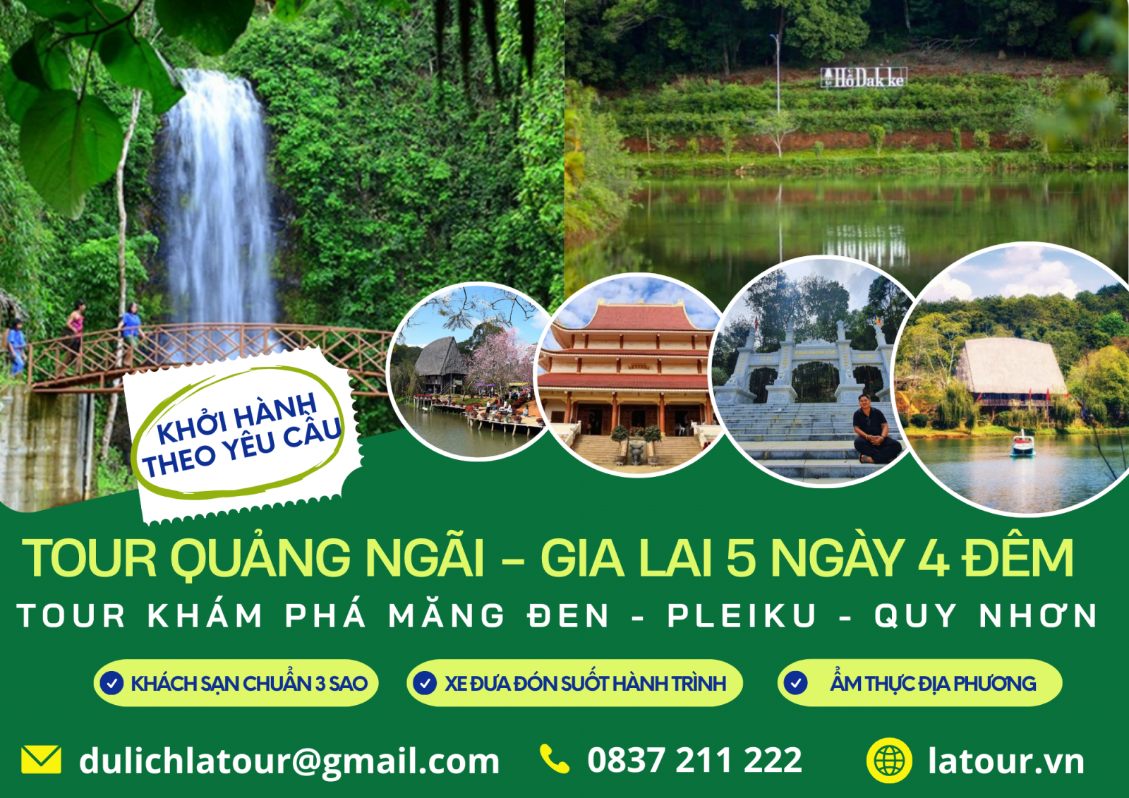 Liên hệ LATOUR để được tư vấn đầy đủ và giữ chỗ Tour Quảng Ngãi – Gia Lai 5 ngày 4 đêm. Chúng tôi đồng hành cùng bạn từ khâu đăng ký đến suốt hành trình.
