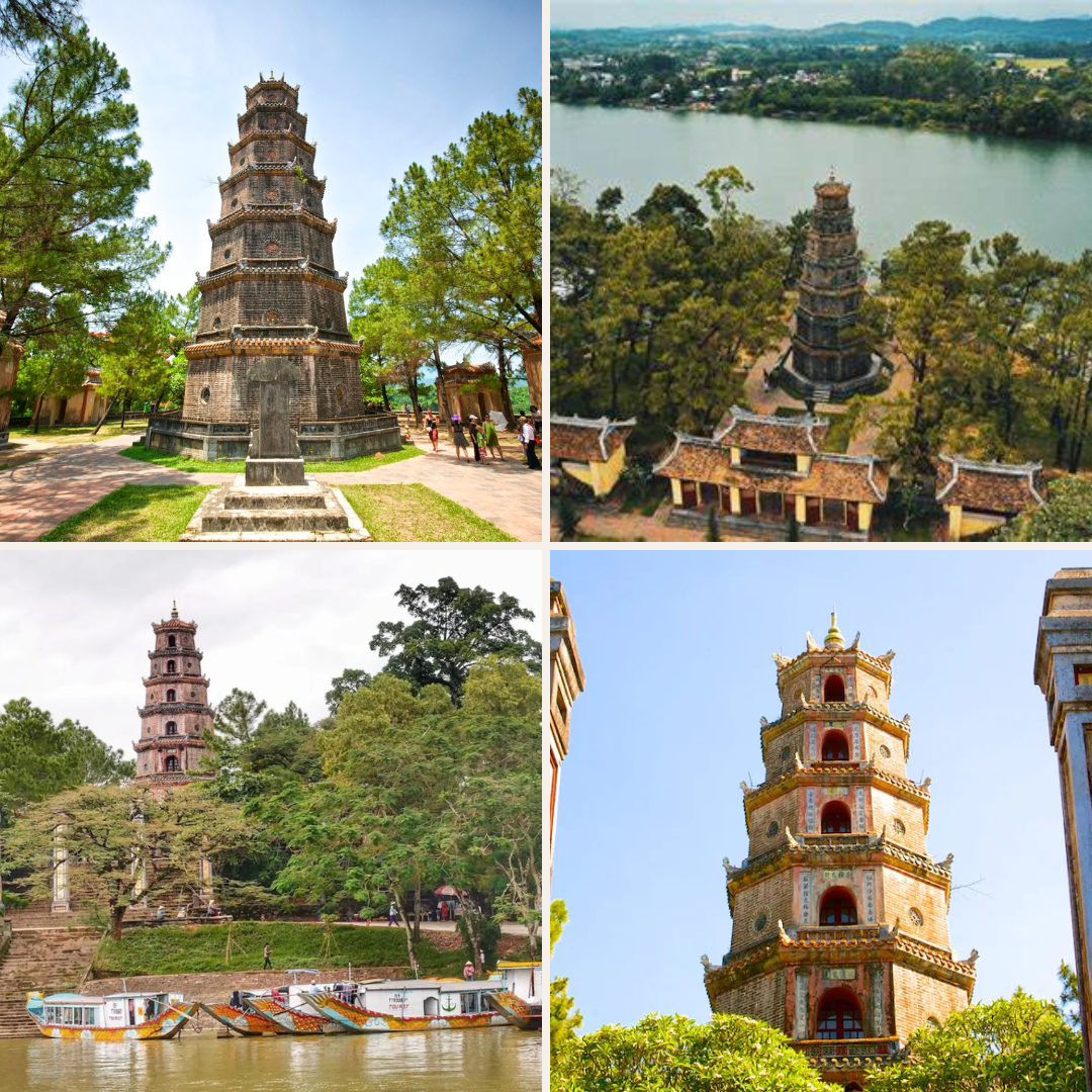 Chùa Thiên Mụ: ngôi chùa cổ kính nhất ở Huế, nổi bật với không gian thanh tịnh bên bờ sông Hương thơ mộng. Đây không chỉ là biểu tượng tâm linh đặc sắc mà còn là điểm tham quan quan trọng, thu hút đông đảo du khách khi đến thăm cố đô Huế.