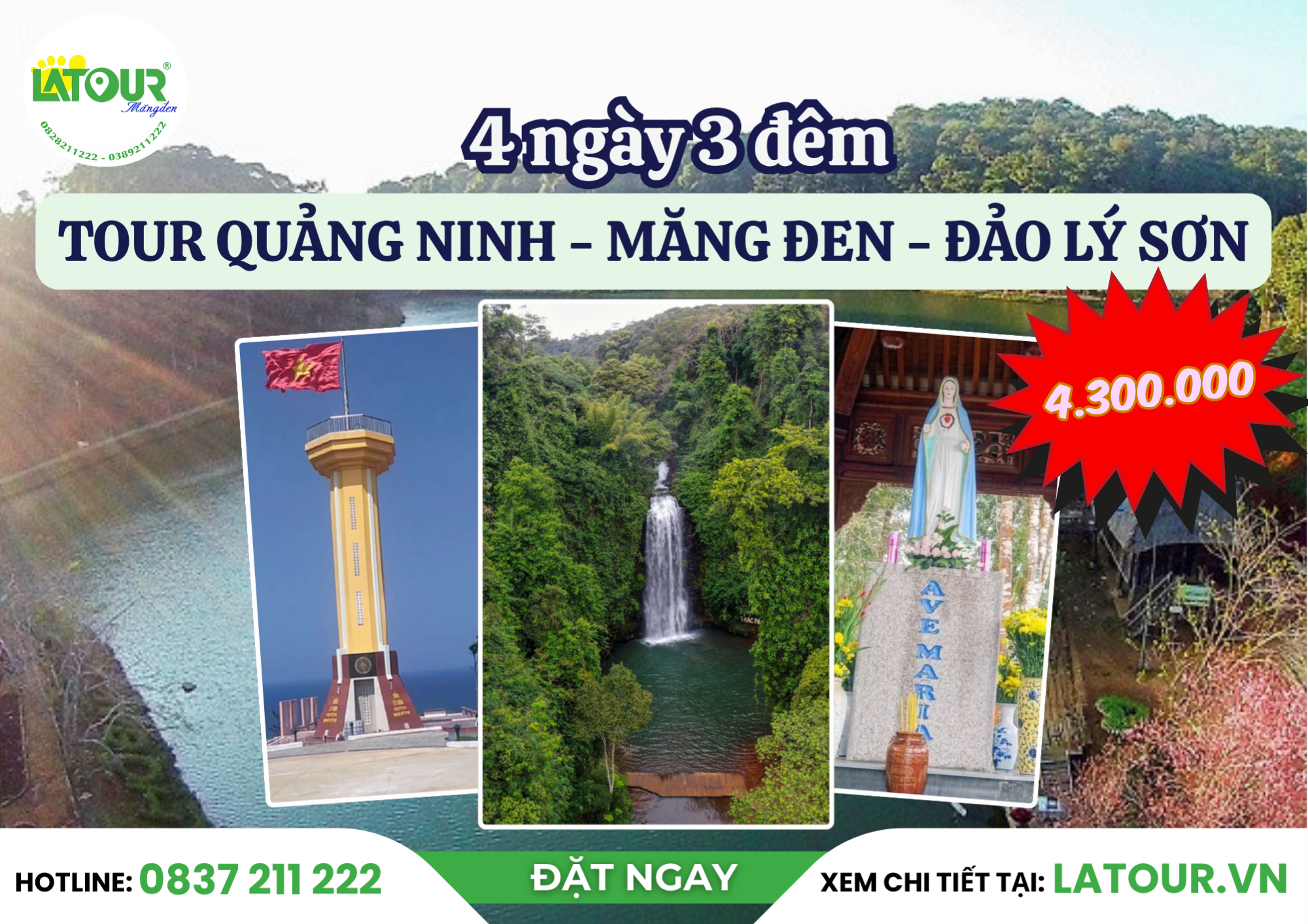 Công ty Du lịch LATOUR giới thiệu đến quý khách Tour Quảng Ninh – Măng Đen – Đảo Lý Sơn 4 ngày 3 đêm mới nhất hiện nay. Chuyến phiêu lưu kết nối giữa cao nguyên đại ngàn và biển trời trong xanh. Quý khách sẽ theo dấu những con đường uốn lượn xuyên rừng, chạm đến Măng Đen – “nàng thơ Tây Nguyên” dịu mát quanh năm, rồi tiếp tục hướng ra biển lớn Lý Sơn với vẻ đẹp trong trẻo, yên bình và đầy sức sống. Cùng LATOUR khám phá một hành trình đặc biệt, đầy cảm xúc. Hãy tham khảo các thông tin bên dưới nhé!