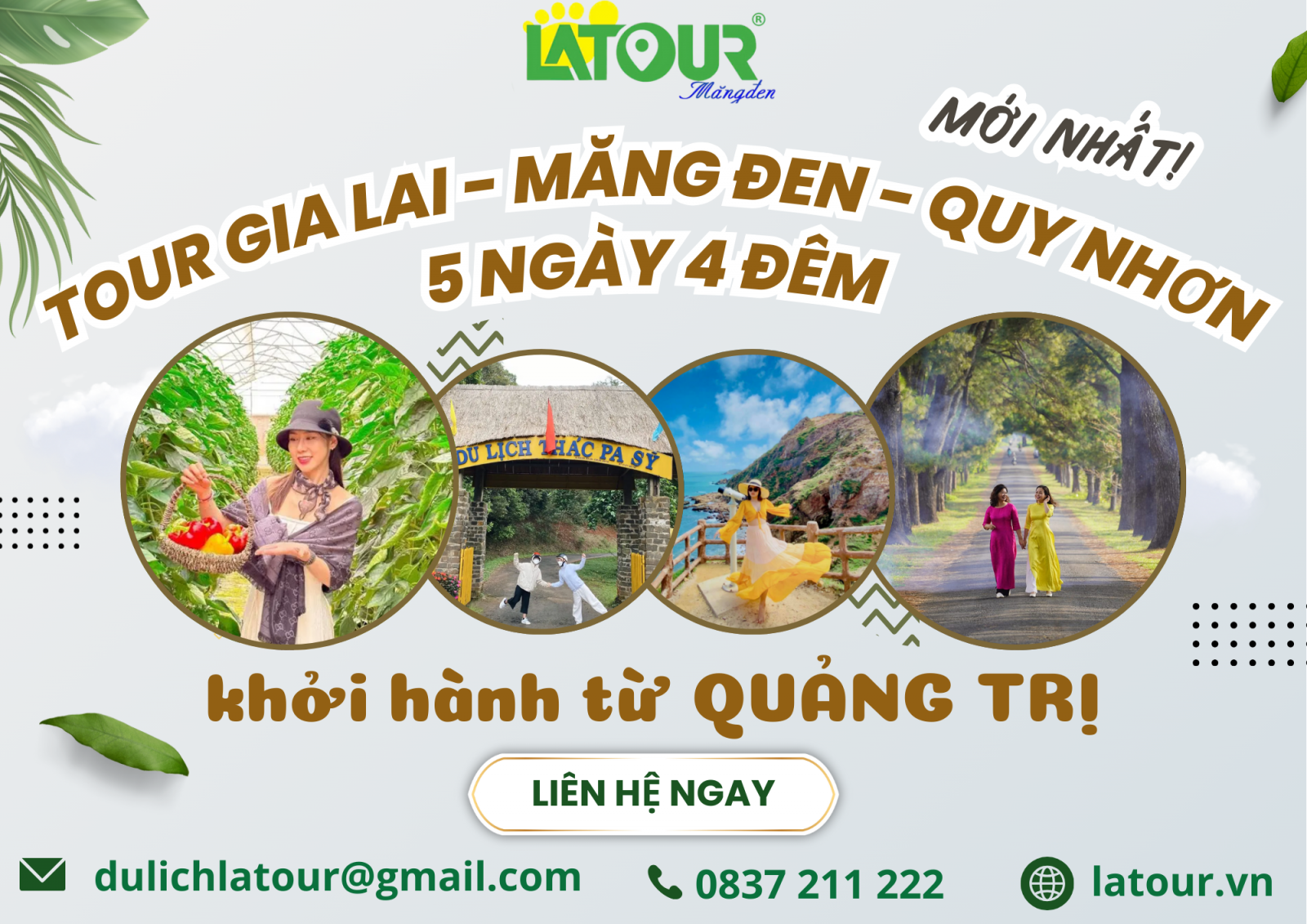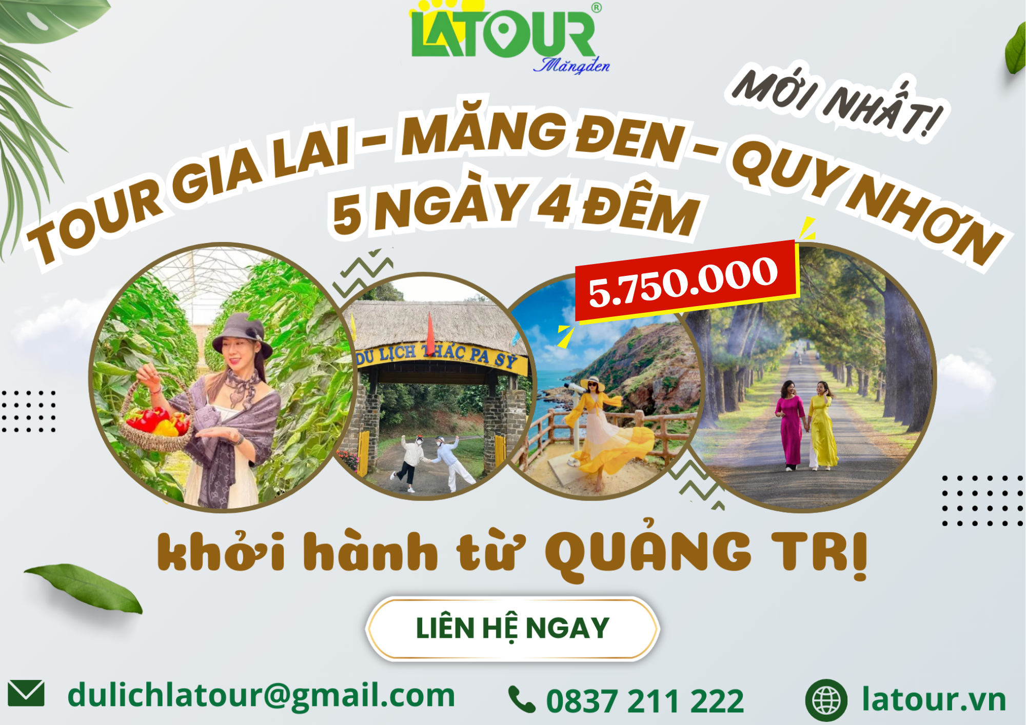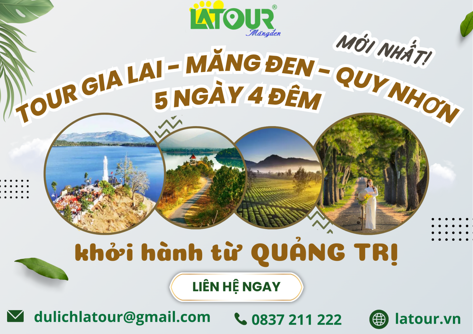 Được thiết kế phù hợp cho gia đình, nhóm bạn và các đoàn công ty, Tour Quảng Trị – Gia Lai – Măng Đen – Quy Nhơn 5 ngày 4 đêm do LATOUR tổ chức mang đến hành trình du lịch trọn gói, khởi hành thuận tiện từ Quảng Trị. Chương trình được xây dựng kết nối mạch lạc giữa Tây Nguyên và miền Trung với lịch trình khoa học, có sự cân bằng giữa nghỉ ngơi và những trải nghiệm độc đáo, để mỗi chặng dừng quý khách đều có những cảm nhận trọn vẹn và đáng nhớ.