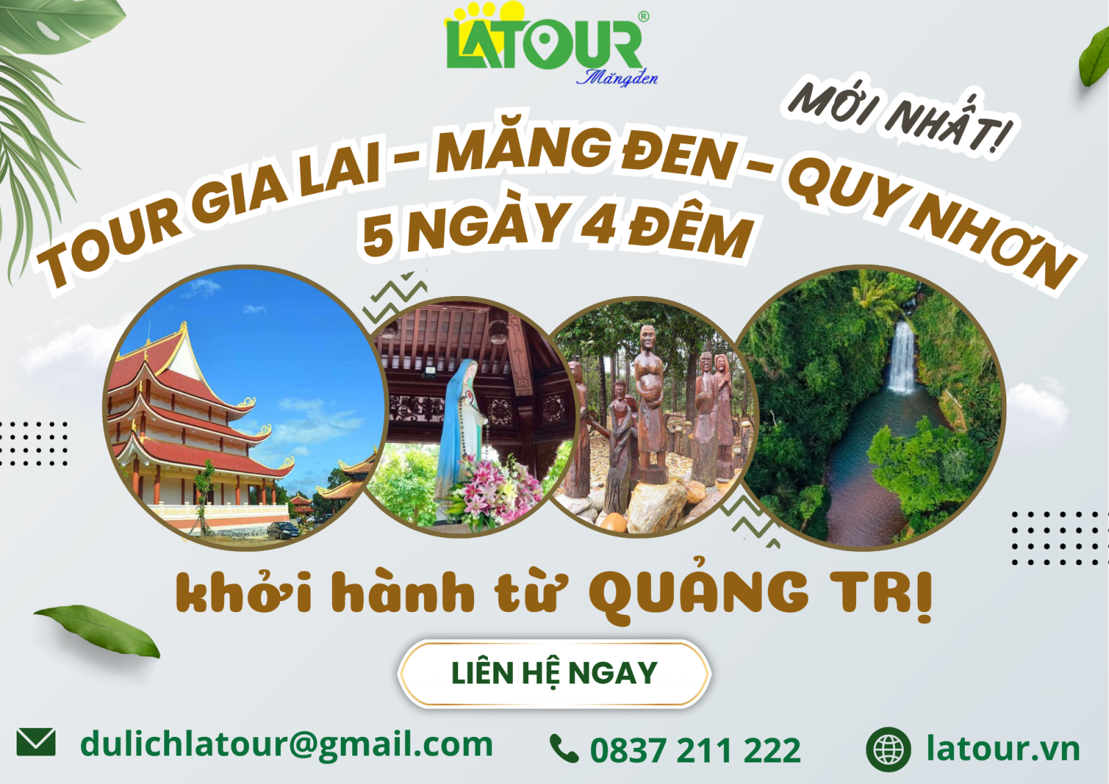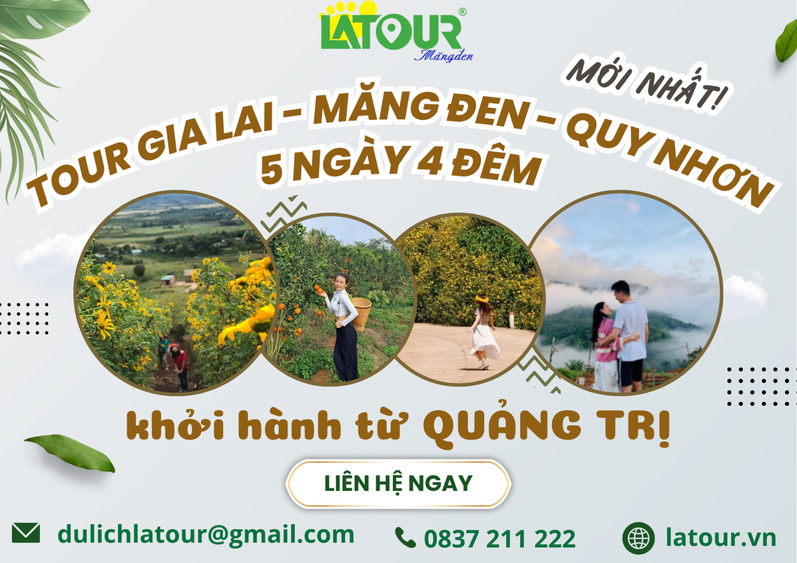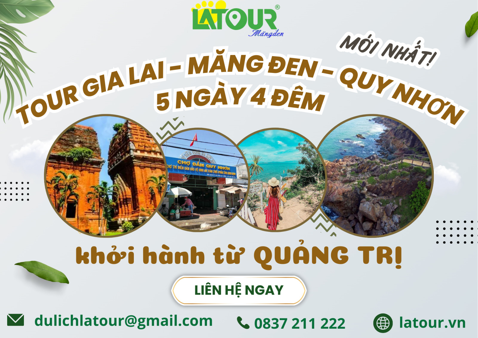 Được thiết kế phù hợp cho gia đình, nhóm bạn và các đoàn công ty, Tour Quảng Trị – Gia Lai – Măng Đen – Quy Nhơn 5 ngày 4 đêm do LATOUR tổ chức mang đến hành trình du lịch trọn gói, khởi hành thuận tiện từ Quảng Trị. Chương trình được xây dựng kết nối mạch lạc giữa Tây Nguyên và miền Trung với lịch trình khoa học, có sự cân bằng giữa nghỉ ngơi và những trải nghiệm độc đáo, để mỗi chặng dừng quý khách đều có những cảm nhận trọn vẹn và đáng nhớ.
