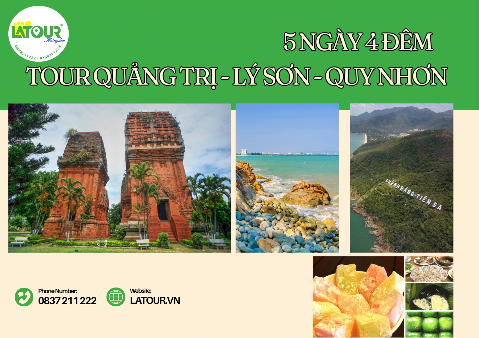 Bạn mong muốn một hành trình Lý Sơn – Quy Nhơn 5 ngày 4 đêm trọn gói, linh hoạt điểm khởi hành và giàu trải nghiệm? LATOUR sẵn sàng đồng hành cùng bạn. Chỉ cần xách vali lên đường, mọi khâu tổ chức còn lại đã có LATOUR lo trọn, đưa bạn chạm đến vẻ đẹp biển đảo, chiều sâu văn hóa miền Trung và những khoảnh khắc khó quên suốt chuyến đi.