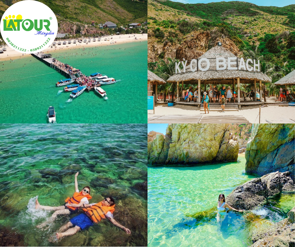 - Kỳ Co: bãi biển nổi tiếng với vẻ đẹp nguyên sơ, cát trắng mịn và làn nước xanh trong. Tại đây, quý khách tự do hòa mình vào không gian biển đảo: tắm biển, chụp ảnh tại các điểm check-in đặc trưng, khám phá hang đá tự nhiên, hoặc lựa chọn trải nghiệm các hoạt động vui chơi trên biển như lặn ngắm san hô, mô tô nước, jetski… (chi phí tự túc).