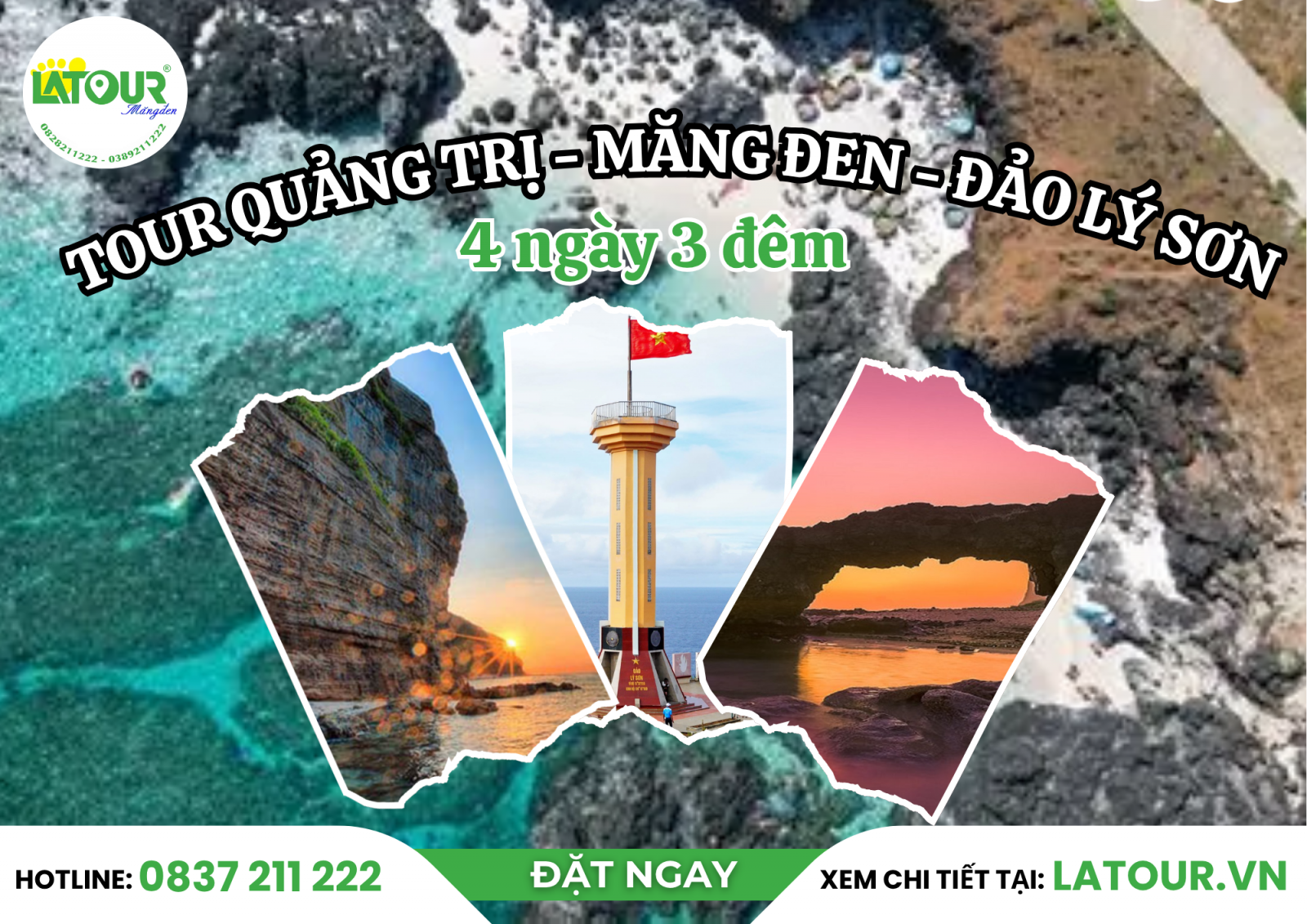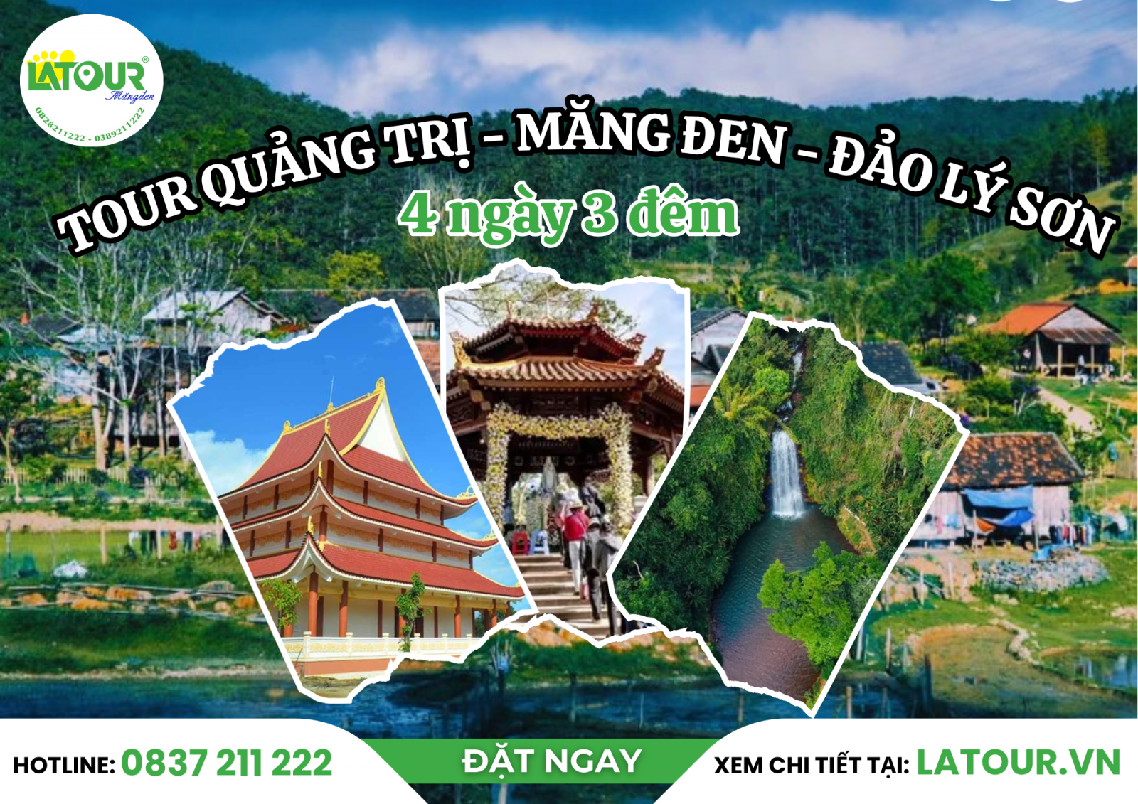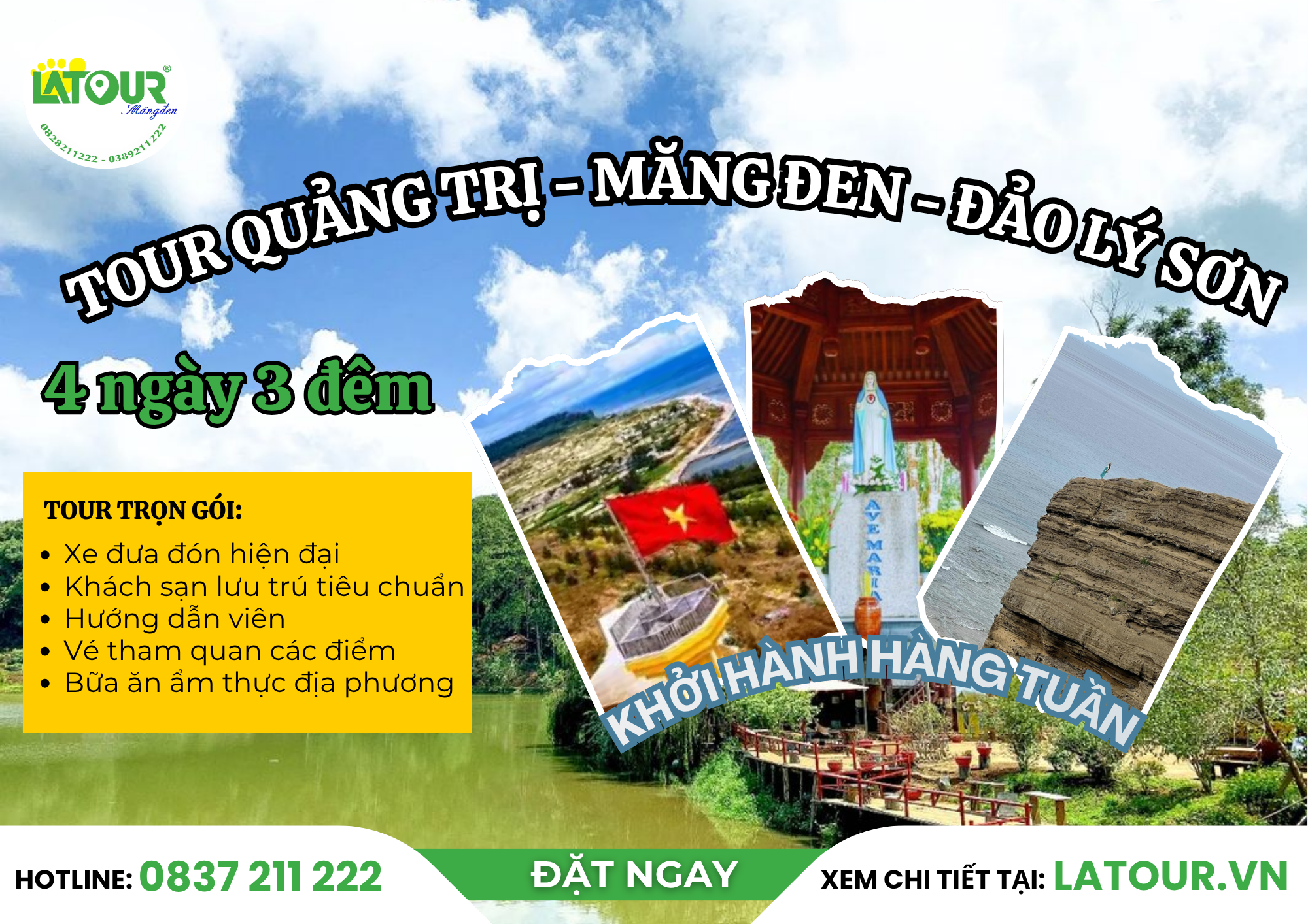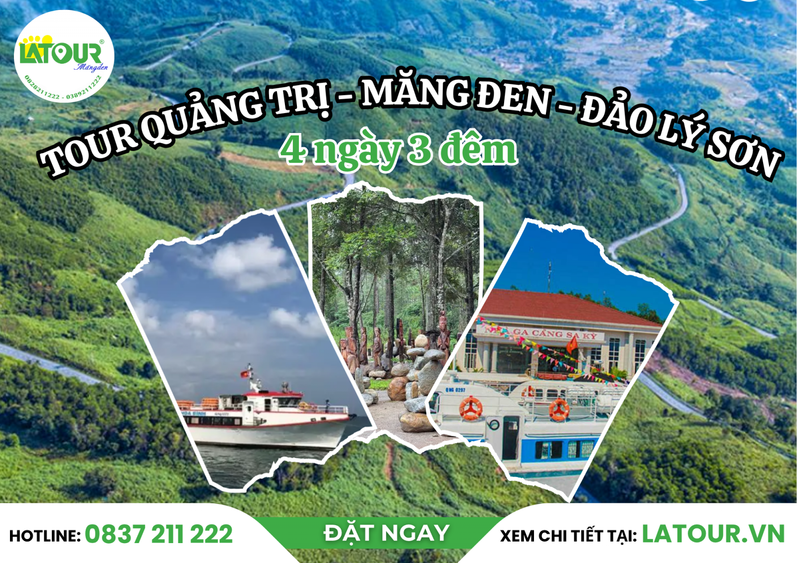Chào đón quý khách đến với hành trình 4 ngày 3 đêm từ Quảng Trị khám phá Măng Đen và Đảo Lý Sơn. Sự hòa quyện của thiên nhiên cao nguyên hùng vĩ giao hòa cùng biển xanh trong vắt. Quý khách sẽ được dạo bước trên những con đường rợp bóng thông mát lành tại Măng Đen và khám phá vẻ hoang sơ, tinh khiết của Đảo Lý Sơn. Hãy cùng LATOUR tìm hiểu chi tiết để mỗi khoảnh khắc trong chuyến đi trở thành trải nghiệm khó quên!