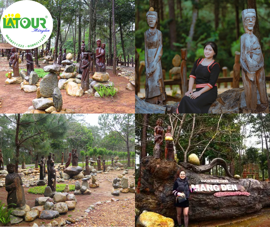 - Vườn Nghệ thuật Măng Đen: Không gian sáng tạo của nhà thiết kế Minh Hạnh, những pho tượng gỗ dân gian tinh xảo kết hợp cùng đá cuội, gỗ lũa và thiên nhiên, tạo nên một thế giới nghệ thuật vừa mộc mạc vừa giàu chiều sâu, đầy cảm hứng.