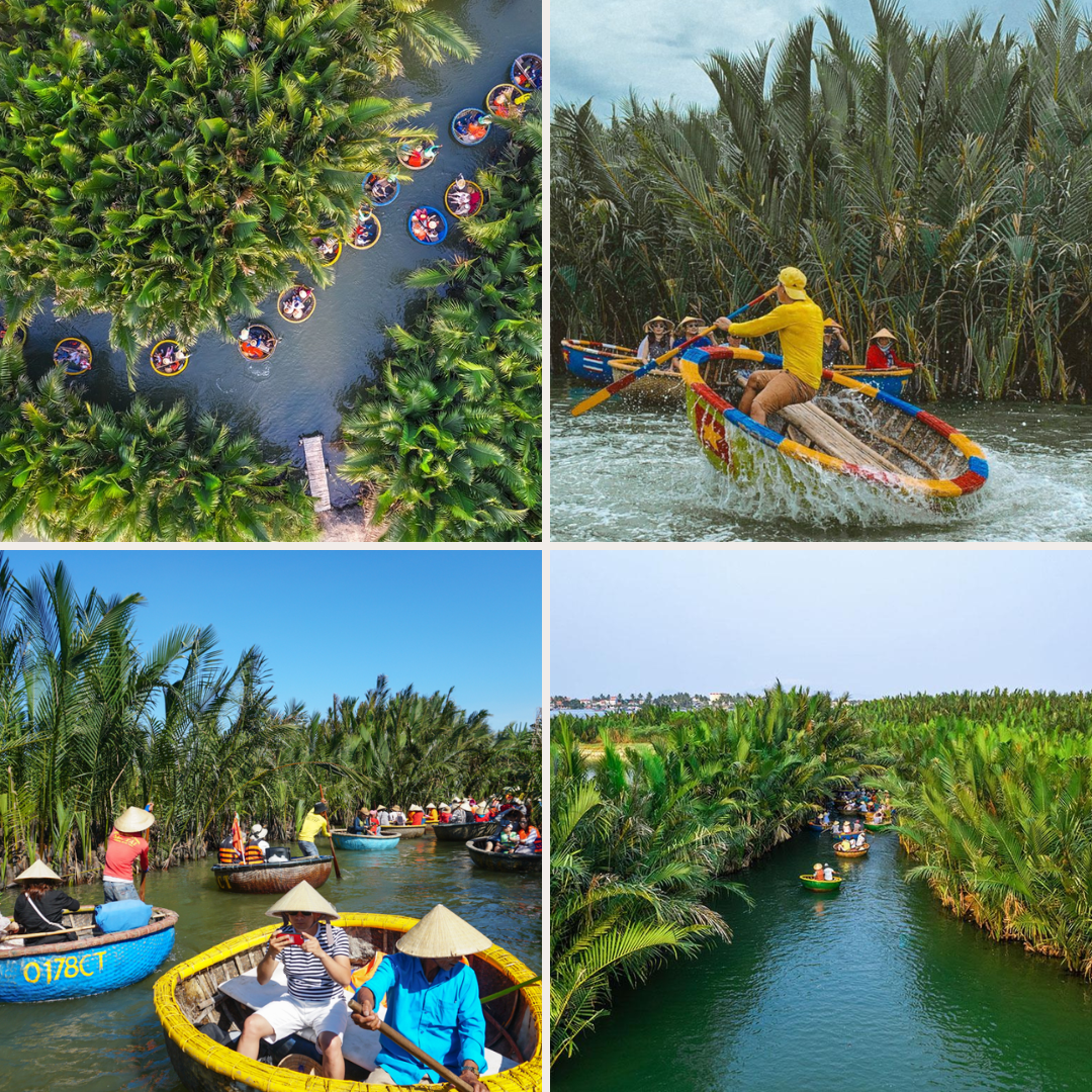 08:45 Đến KDL, đoàn đi bộ đến bến đỗ thuyền thúng và bắt đầu với những trải nghiệm tuyệt vời của Tour Rừng Dừa Bảy Mẫu đi từ Đà Nẵng: