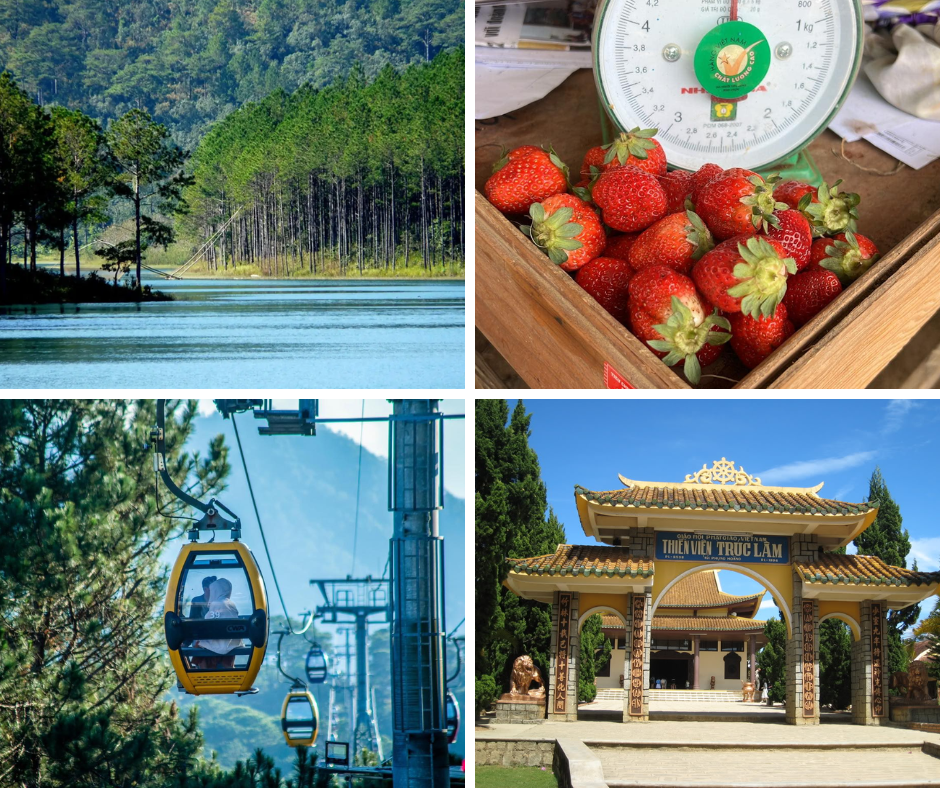 - Vườn dâu Đà Lạt: Một trong những điểm đến hấp dẫn của thành phố ngàn hoa. Với khí hậu ôn hòa quanh năm, Đà Lạt nổi tiếng với các vườn dâu tây tươi ngon và đẹp mắt. Du khách không chỉ được tham quan, ngắm nhìn và chụp ảnh với những vườn dâu đỏ rực mà còn có cơ hội tự tay hái những trái dâu chín mọng, thưởng thức ngay tại chỗ hoặc mua về làm quà.
