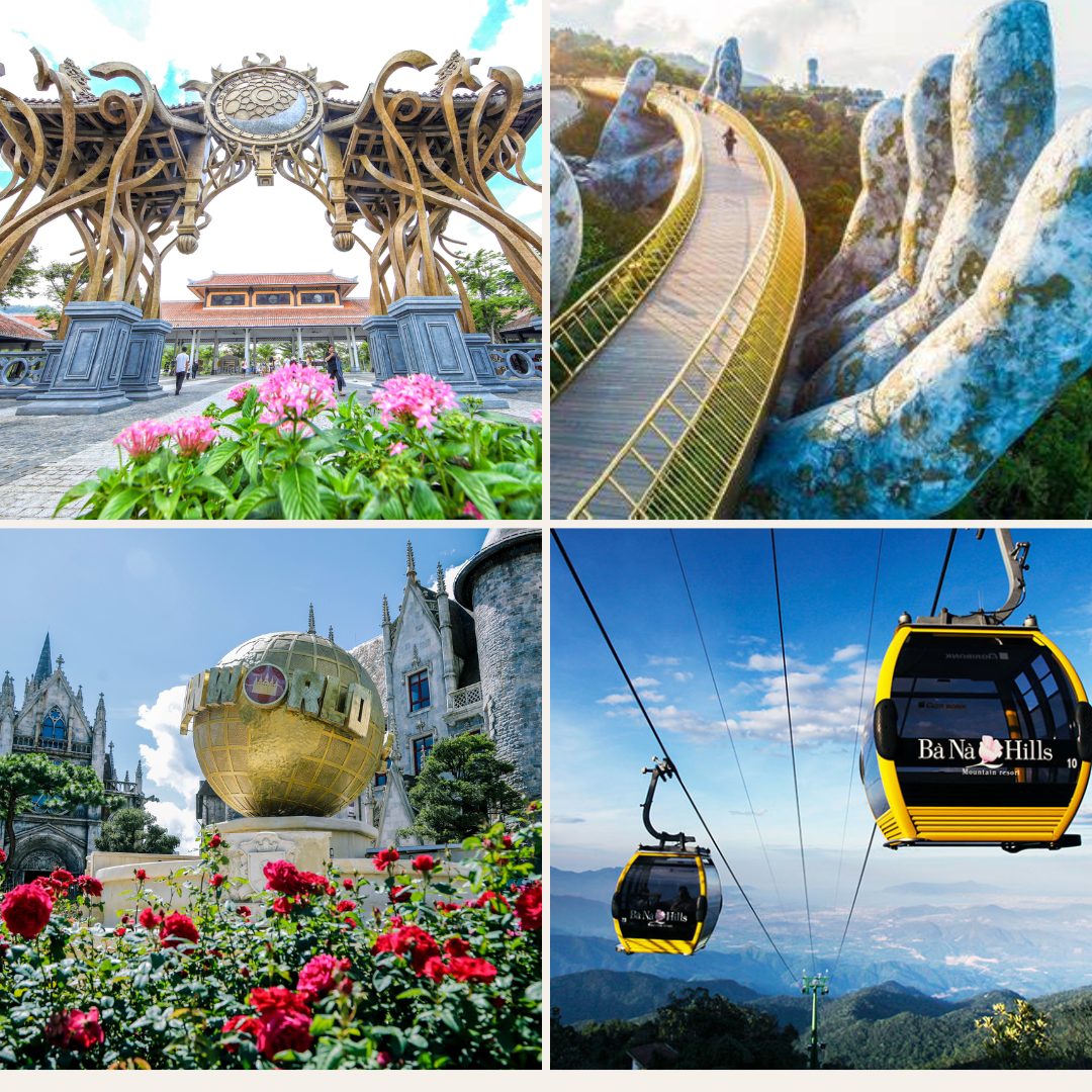 • Bà Nà Hills: Quý khách sẽ có cơ hội khám phá bốn mùa trong một ngày, từ mùa xuân tươi mới cho đến mùa đông lạnh giá. Chuyến hành trình bắt đầu từ những tuyến cáp treo ngoạn mục, đưa du khách ngắm nhìn toàn cảnh rừng nguyên sinh hoang sơ và hùng vĩ của Bà Nà. Tại đây, quý khách không chỉ được đắm chìm trong vẻ đẹp của thiên nhiên mà còn được thưởng thức những món ăn đặc sản đa dạng, phong phú. Đặc biệt, không khí lễ hội rộn ràng, đầy màu sắc sẽ khiến mỗi khoảnh khắc trở nên khó quên.