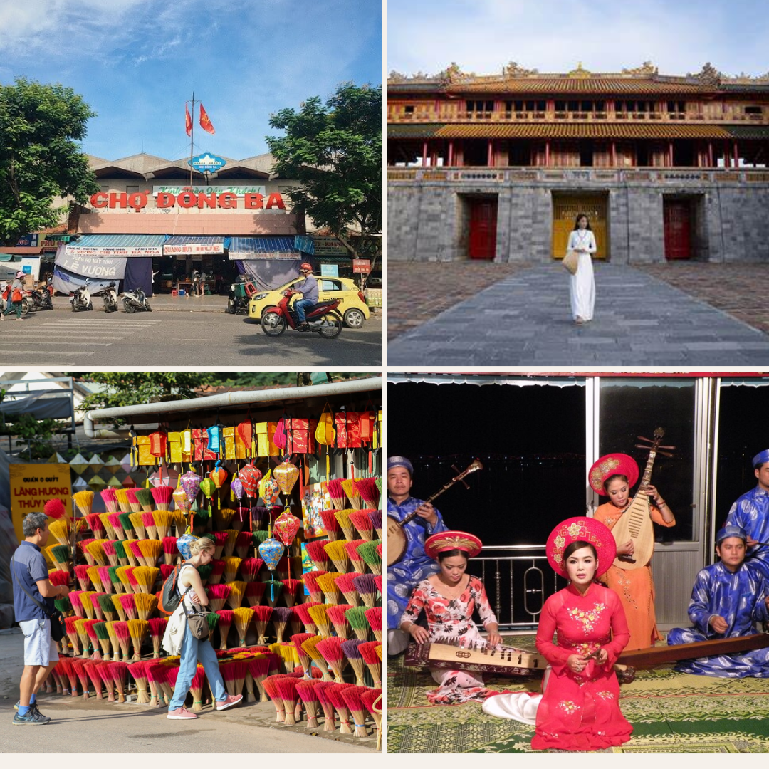 • Chợ Đông Ba: Đoàn sẽ có thời gian tự do trải nghiệm, tham quan và mua sắm các loại đặc sản truyền thống của Huế để làm quà sau chuyến du lịch. Đây là điểm đến lý tưởng giúp quý khách cảm nhận nét văn hóa địa phương đặc sắc qua những món hàng đa dạng, từ bánh bèo, nem lụi đến các sản phẩm thủ công mỹ nghệ tinh xảo