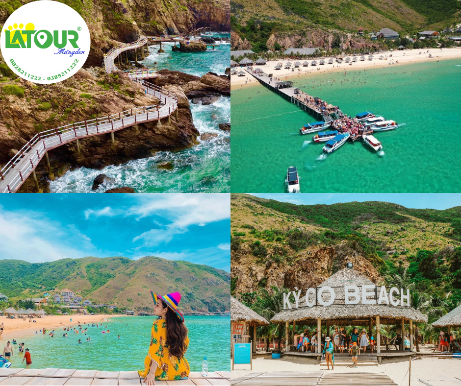 - Đảo Kỳ Co: quý khách tận hưởng không gian biển đảo nguyên sơ với làn nước trong vắt, bãi cát trắng mịn và địa hình tự nhiên đa dạng. Du khách tự do tắm biển, chụp ảnh tại Cầu Yến, Cầu Trái Tim, khám phá các hang đá tự nhiên, suối nước mát và khu vườn sinh thái. Ngoài ra, quý khách có thể tự túc tham gia các hoạt động biển hấp dẫn như lặn ngắm san hô, đi bộ dưới đáy biển, mô tô nước, Jetski… mang đến những trải nghiệm sôi động và đáng nhớ.