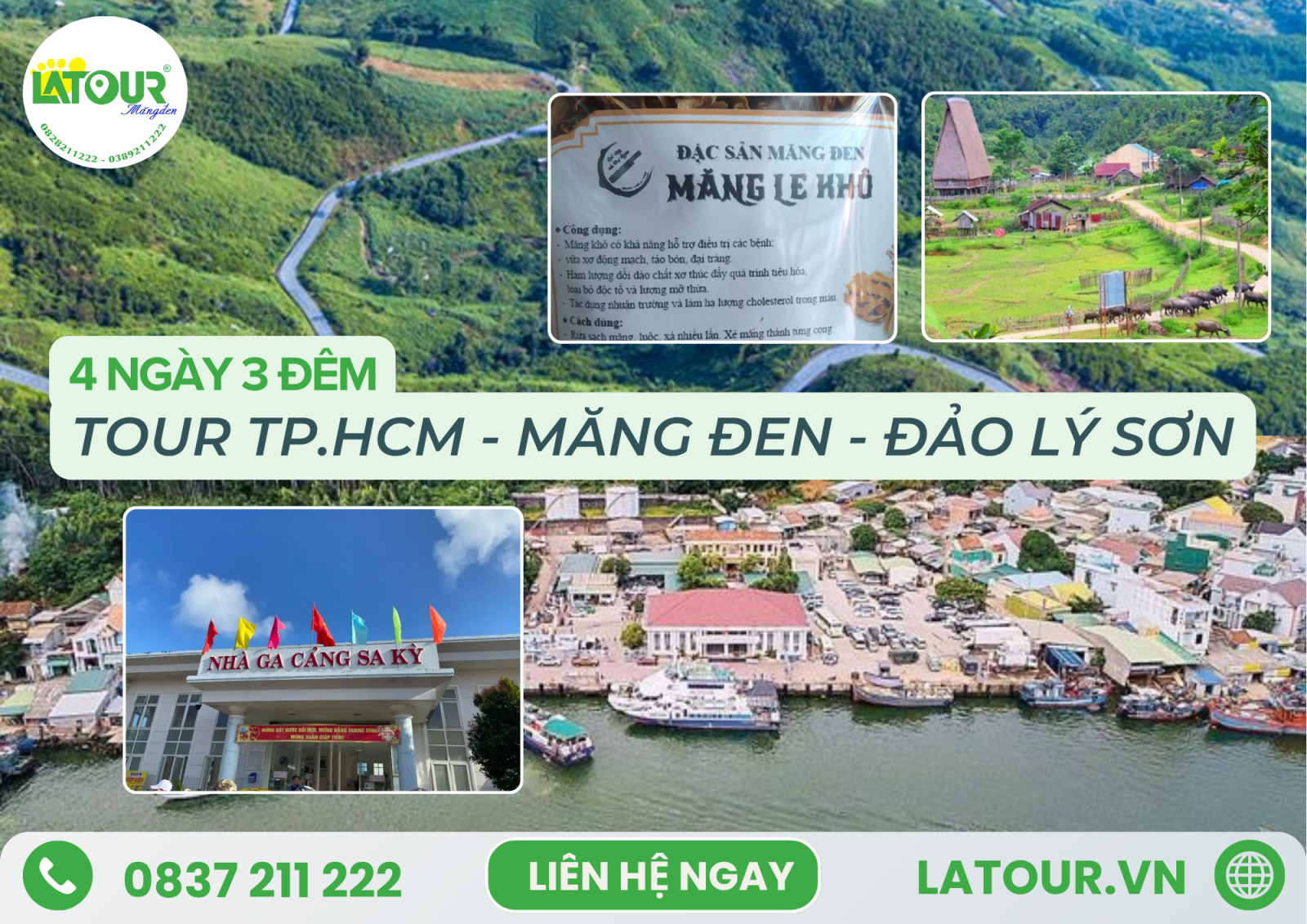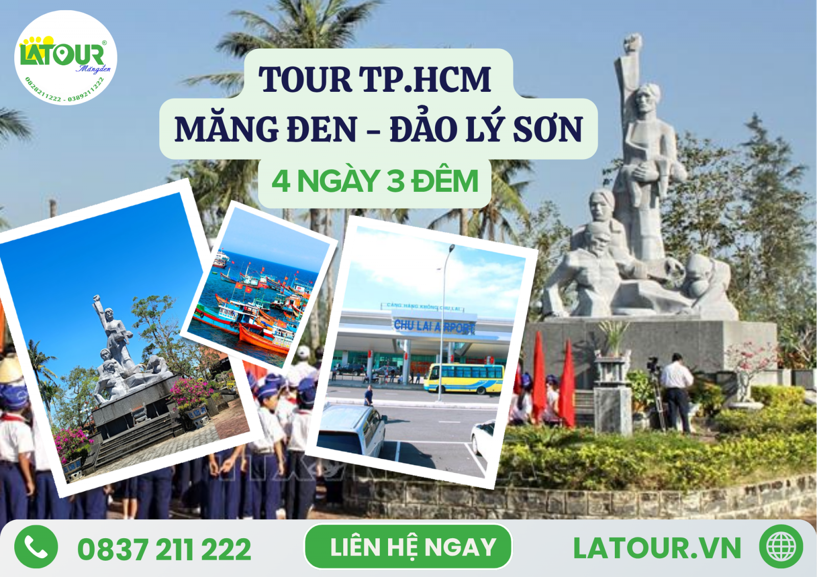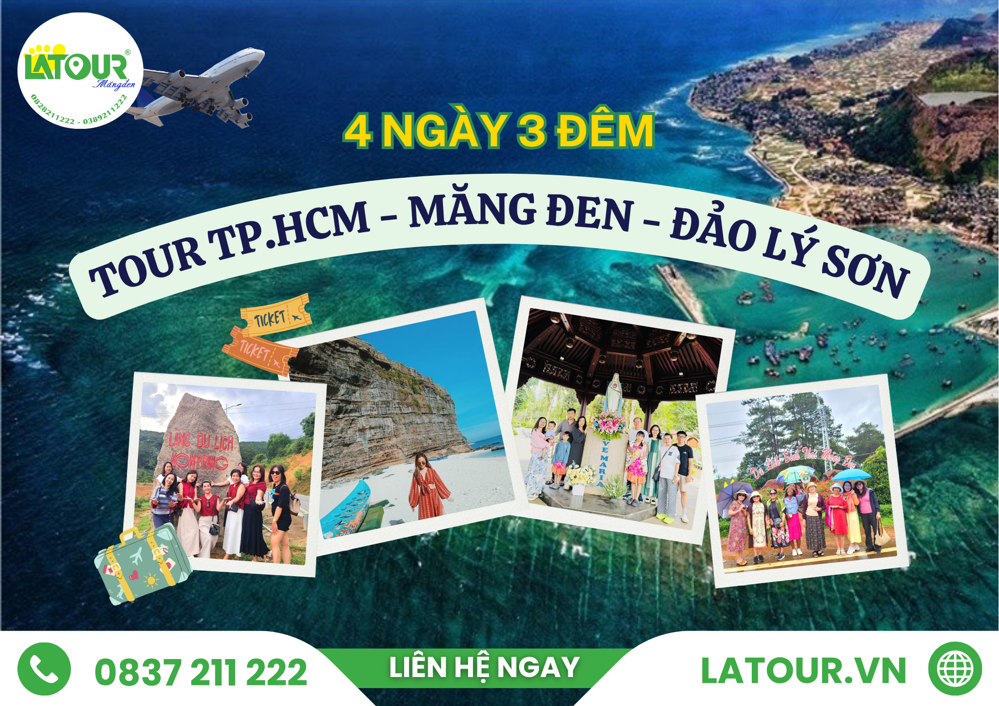 Khi nhịp sống nơi phố thị trở nên quá vội vã, hãy để Công ty Du lịch LATOUR đồng hành cùng quý khách trong Tour TP.HCM – Măng Đen – Đảo Lý Sơn 4 ngày 3 đêm. Một hành trình đưa bạn rời xa khói bụi đô thành để tìm về với nét bình yên của núi rừng Tây Nguyên và vẻ quyến rũ của biển đảo miền Trung. Chuyến đi là sự hòa quyện tuyệt vời giữa không gian lãng đãng sương mờ của Măng Đen và sắc xanh rực rỡ của đảo Lý Sơn, hứa hẹn mang đến cho du khách những trải nghiệm mới mẻ, cảm xúc trọn vẹn và những phút giây thư thái hiếm có.