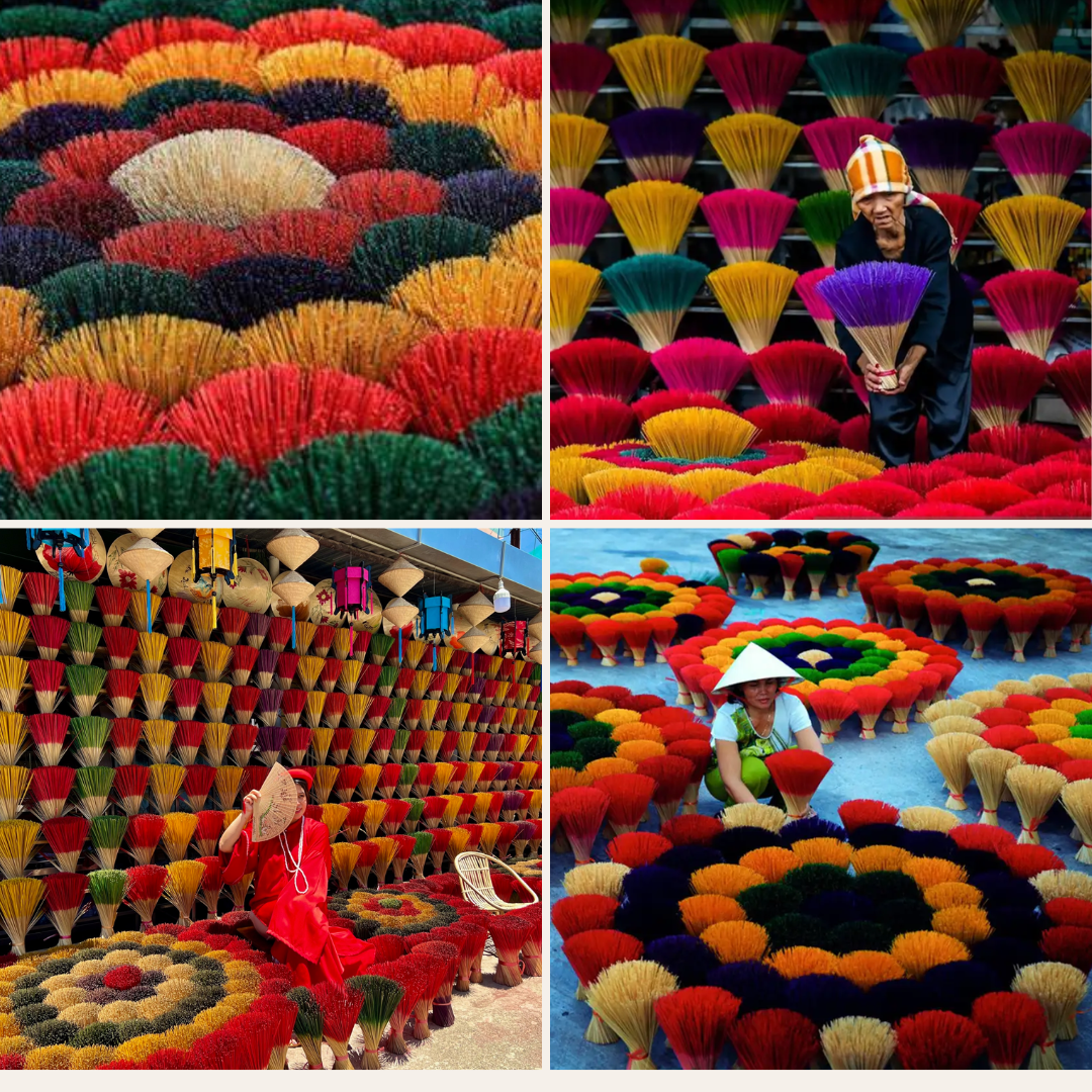 Làng Hương Thủy Xuân: một làng nghề truyền thống lâu đời tại Huế, nổi bật với không gian rực rỡ sắc màu từ những bó hương được sắp đặt nghệ thuật. Du khách đến đây không chỉ được check-in với khung cảnh độc đáo mà còn có cơ hội trải nghiệm trực tiếp các công đoạn làm hương thủ công, cảm nhận nét đẹp văn hóa đặc trưng của xứ Huế.