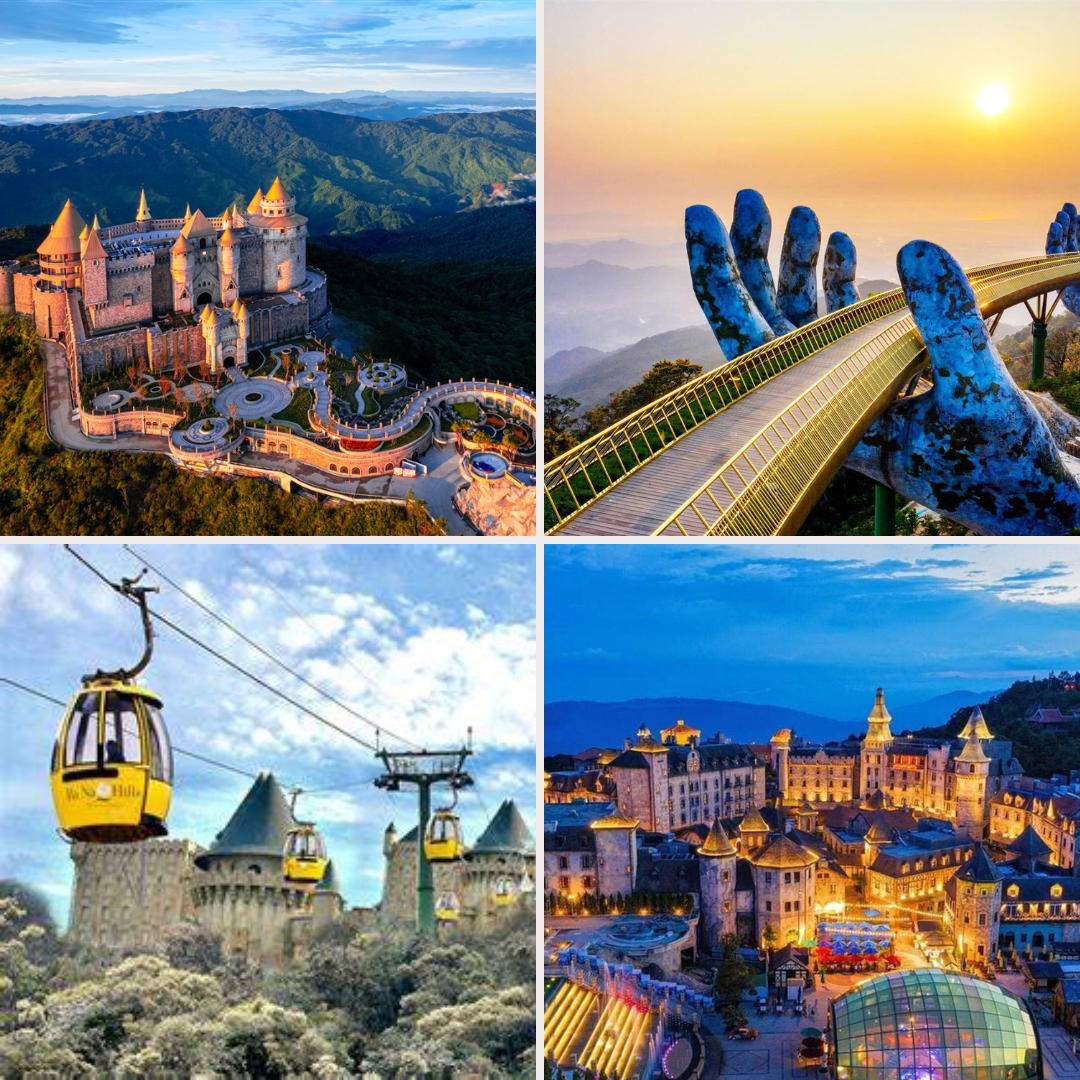 • Bà Nà Hills: Quý khách sẽ có cơ hội khám phá bốn mùa trong một ngày, từ mùa xuân tươi mới cho đến mùa đông lạnh giá. Chuyến hành trình bắt đầu từ những tuyến cáp treo ngoạn mục, đưa du khách ngắm nhìn toàn cảnh rừng nguyên sinh hoang sơ và hùng vĩ của Bà Nà. Tại đây, quý khách không chỉ được đắm chìm trong vẻ đẹp của thiên nhiên mà còn được thưởng thức những món ăn đặc sản đa dạng, phong phú. Đặc biệt, không khí lễ hội rộn ràng, đầy màu sắc sẽ khiến mỗi khoảnh khắc trở nên khó quên.