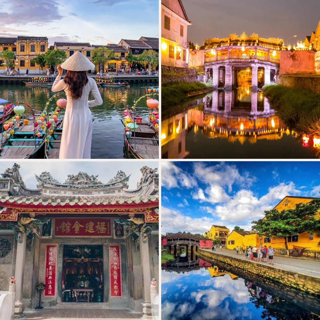 • Phố cổ Hội An: Là một di sản văn hóa thế giới được UNESCO công nhận, nổi tiếng với vẻ đẹp cổ kính và nét kiến trúc độc đáo từ thế kỷ 15 - 19. Nằm bên dòng sông Thu Bồn, Hội An từng là một thương cảng sầm uất, nơi giao thoa văn hóa của nhiều quốc gia như Trung Quốc, Nhật Bản và các nước phương Tây. Quý khách đến đây sẽ được dạo bước trên những con đường nhỏ lát gạch, ngắm nhìn những ngôi nhà cổ mái ngói rêu phong, các hội quán, chùa cầu nổi tiếng và thưởng thức ẩm thực đặc sắc. Vào buổi tối, phố cổ càng lung linh với ánh đèn lồng rực rỡ, tạo nên khung cảnh lãng mạn và hoài cổ.