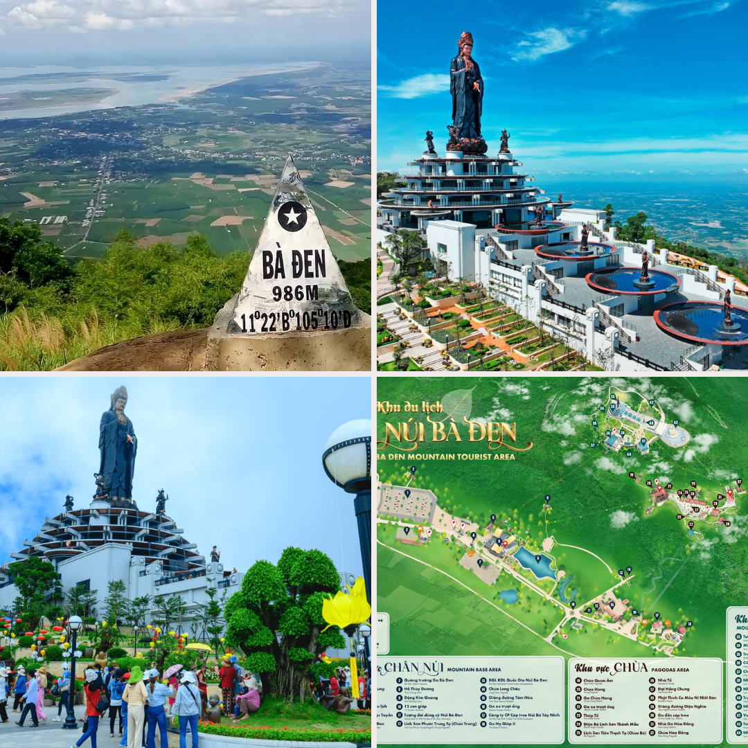 - KDL Núi Bà Đen: núi Bà Đen – biểu tượng tâm linh và du lịch nổi bật của Tây Ninh – được mệnh danh là “nóc nhà Nam Bộ”, giữ kỷ lục là ngọn núi cao nhất miền Nam Việt Nam. Mỗi năm, hàng triệu du khách hành hương đến nơi đây để viếng chùa Bà linh thiêng tọa lạc ở độ cao 350 mét và khám phá hệ thống công trình văn hóa – nghệ thuật độc đáo trên đỉnh núi, nơi giao thoa giữa thiên nhiên hùng vĩ và tín ngưỡng dân gian sâu sắc.